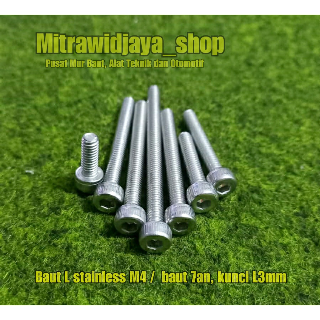 BAUT L STAINLESS STELL M4x10, 20,25,35,40,50 A2-70 304 baut 7an baut L ss M4 diameter 4mm baut kunci 7 7an baut fulldratt stenlis baut master rem baut master rem tabung baut L3mm baut mater rem model tabung