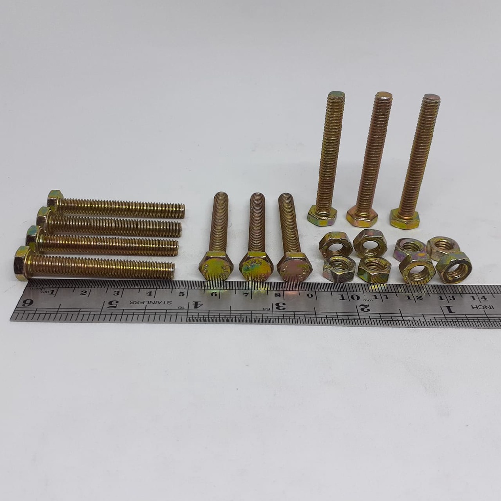 BAUT MUR KUNING M6 X 45 / BMK M6X45 / BAUT M6X45 KUNING BMK M6 X 45 KUNCI 10 PANJANG 4,5CM 4,5 CM DIAMETER BODY 6MM SINAR RATU BAROKAH