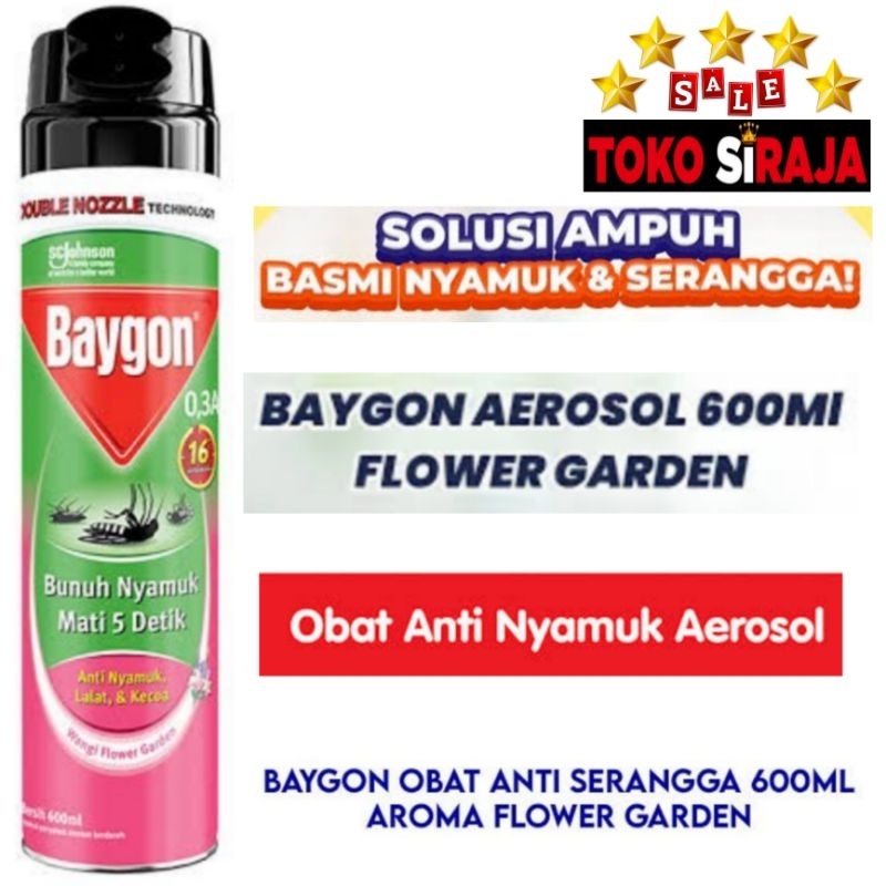 BAYGON SPRAY 600 ML FLOWER GARDEN / BAYGON AEROSOL SEMPROT 600ML ANTI NYAMUK DAN SERANGGA