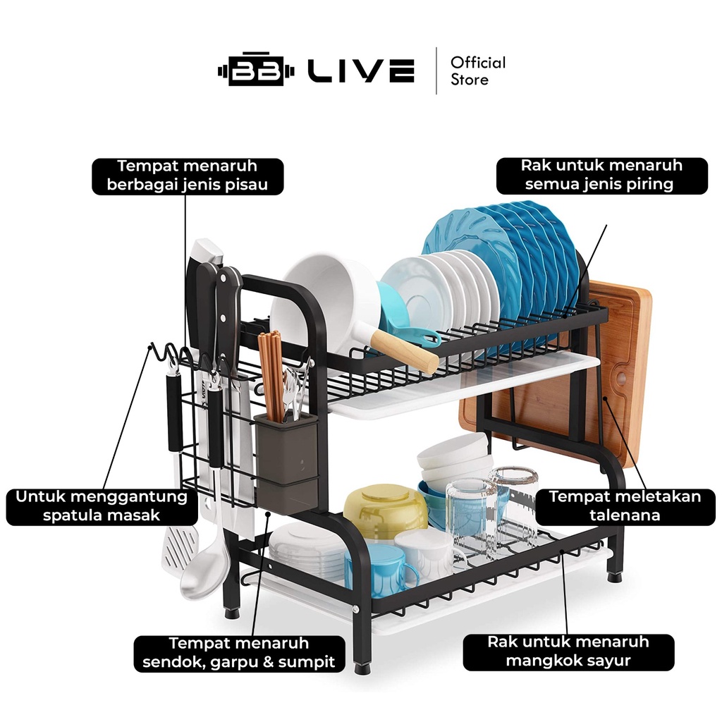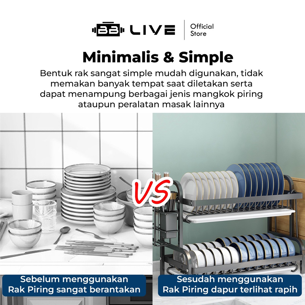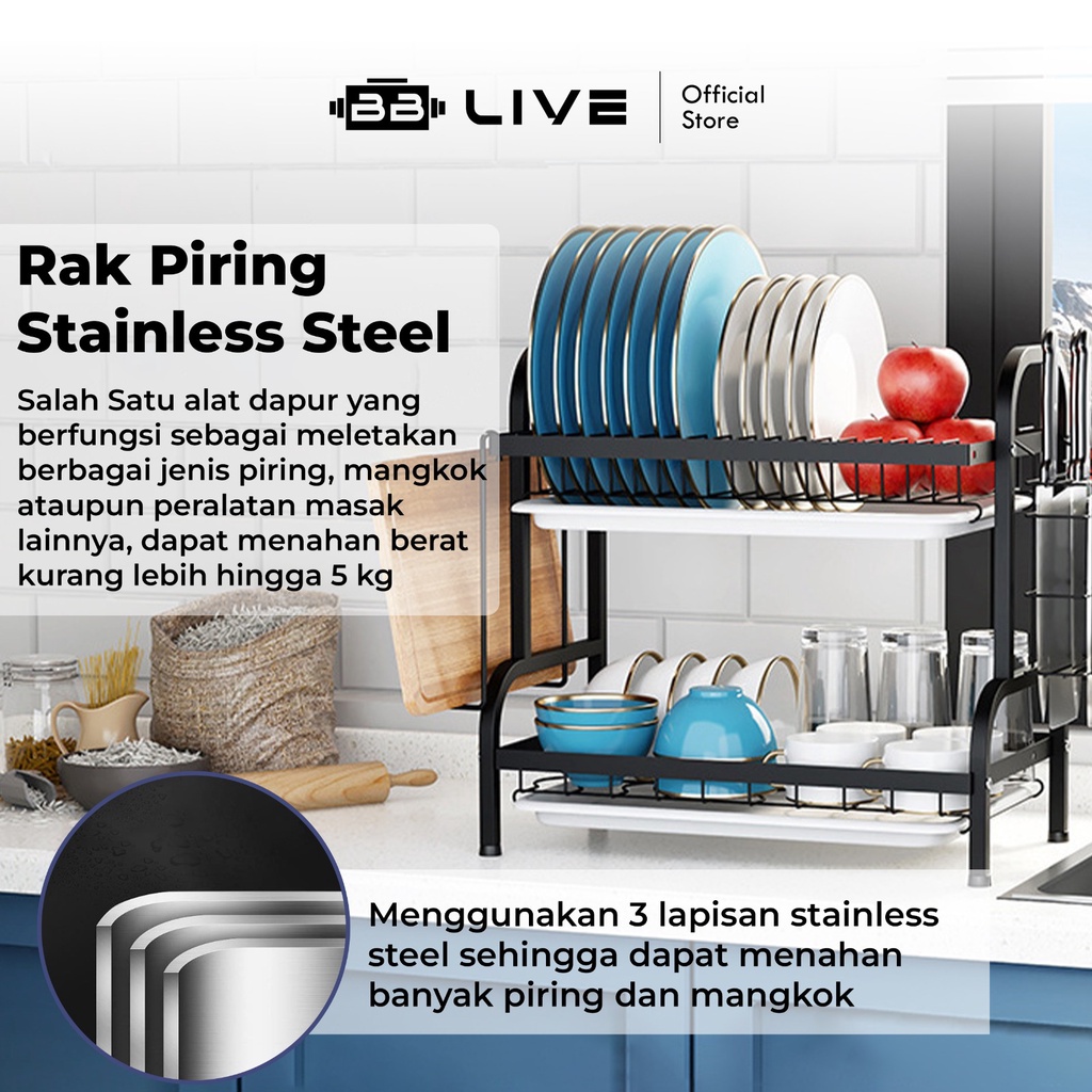 BB Live Rak Piring Stainless Steel / Rak Piring Dapur Serbaguna Qualitas Premium Anti Patah / Rak Piring Nordic Style Gantung Stainless