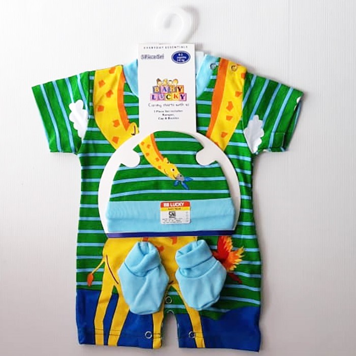BB Lucky Jumper Set Pakaian Bayi 3 in 1 Motif Giraffe 0-3 Bulan / Jumper Bayi Laki-Laki / Pakaian Ba