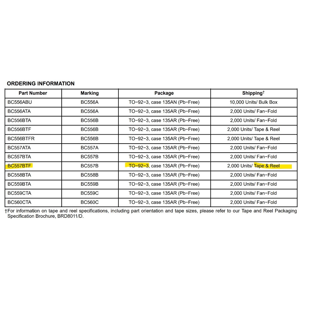 BC557 100mA 45V PNP Bipolar Transistor 557 557B TO-92 onsemi ORIGINAL