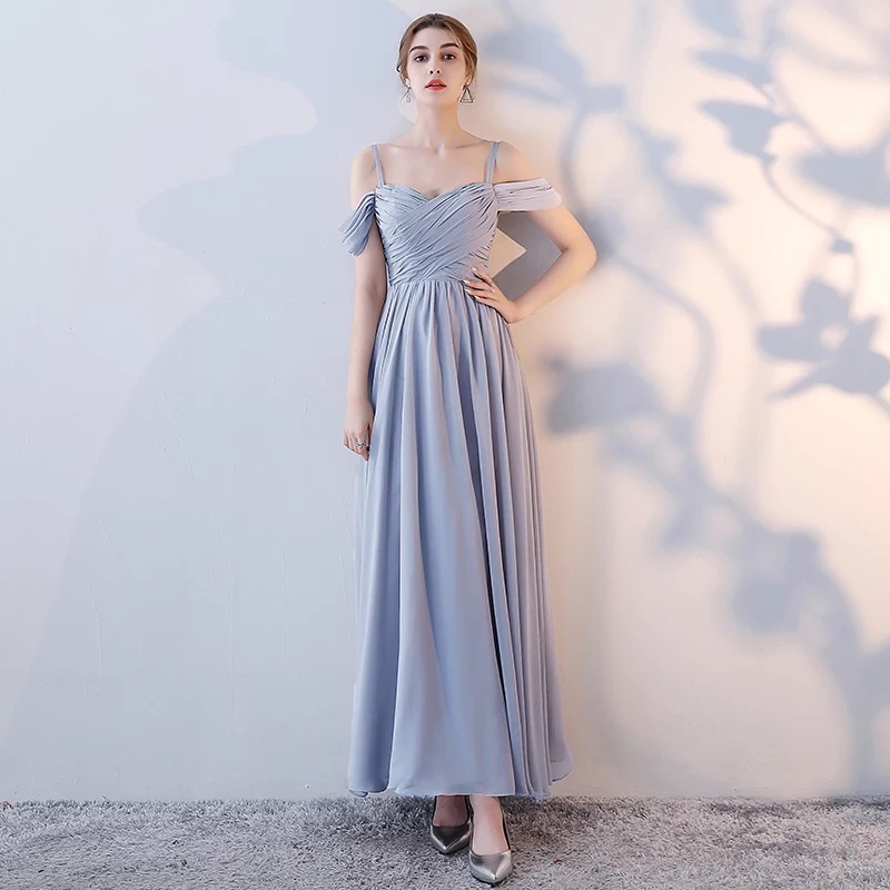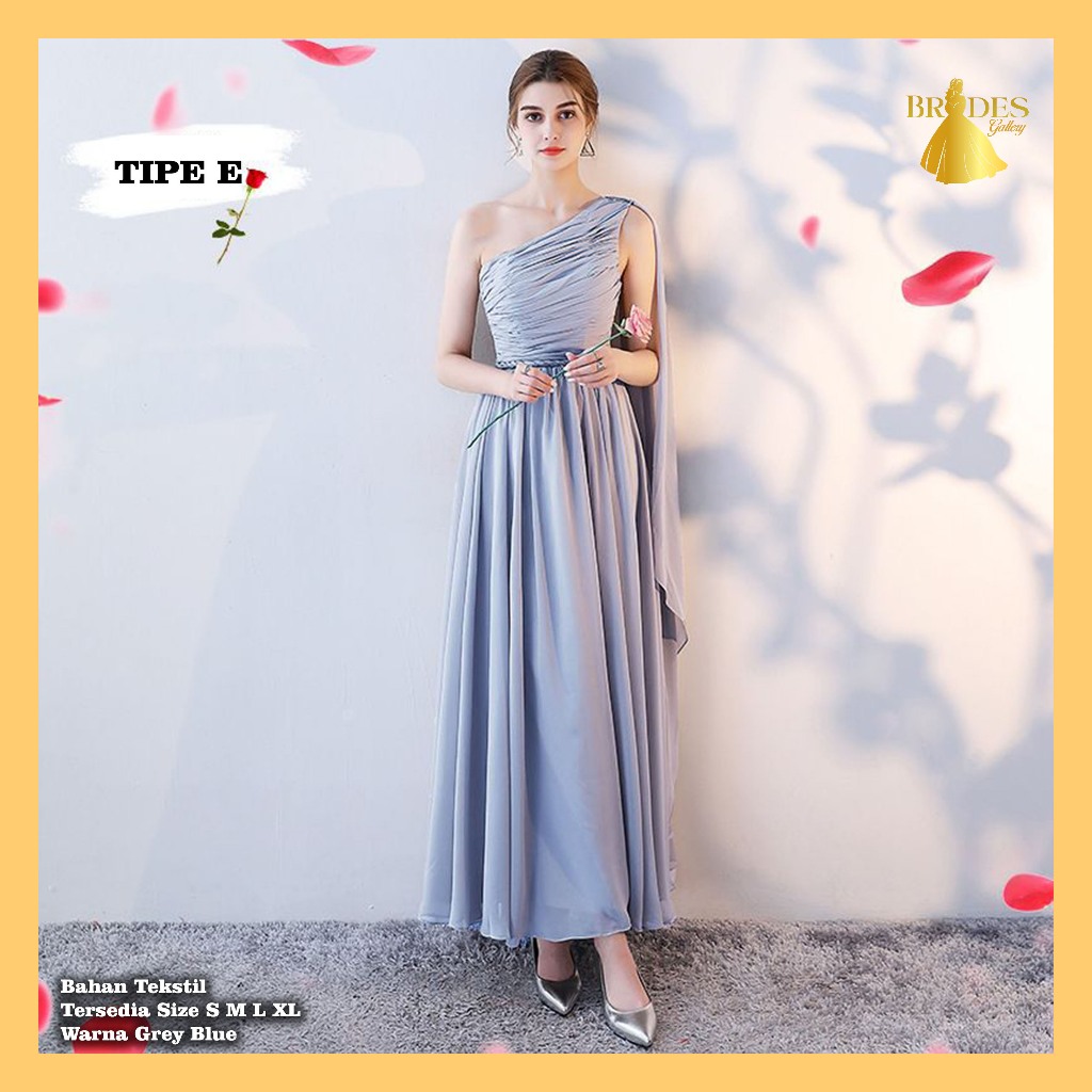 BD Gaun Bridesmaid Sister Dress Polos Long Comfort Grey Blue Gaun Pesta Abu Simple BD40-45