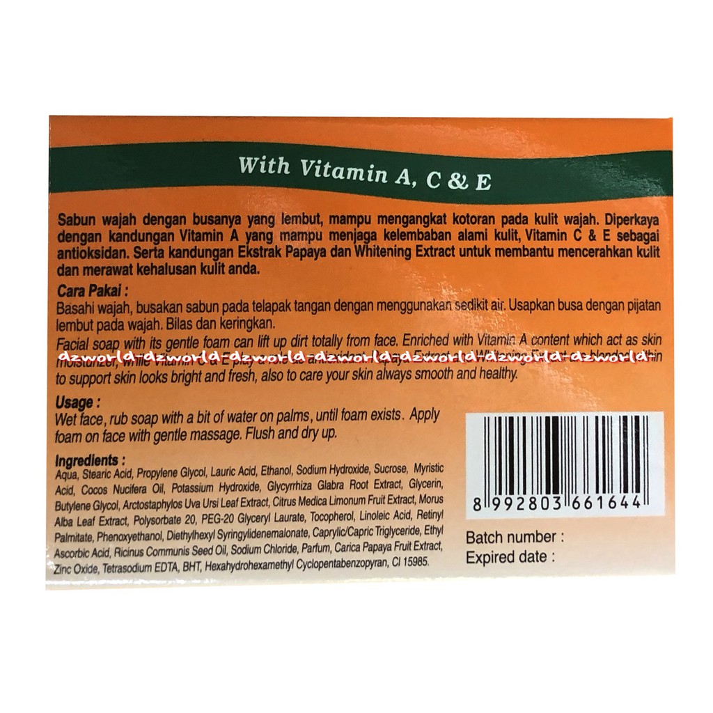 BDL Papaya 135gr Brightening Soap With Vitamin A C E Sabun Batang 135 gram B D L