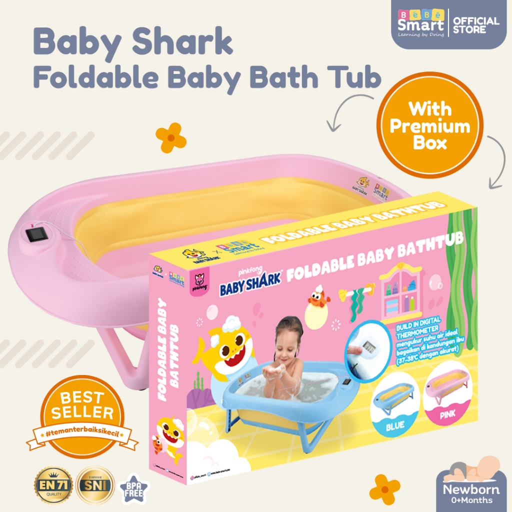 Bak Mandi Bayi Lipat | BEBE SMART Baby Shark Foldable Baby Bath Tub | Baby Bather | Tempat Mandi
