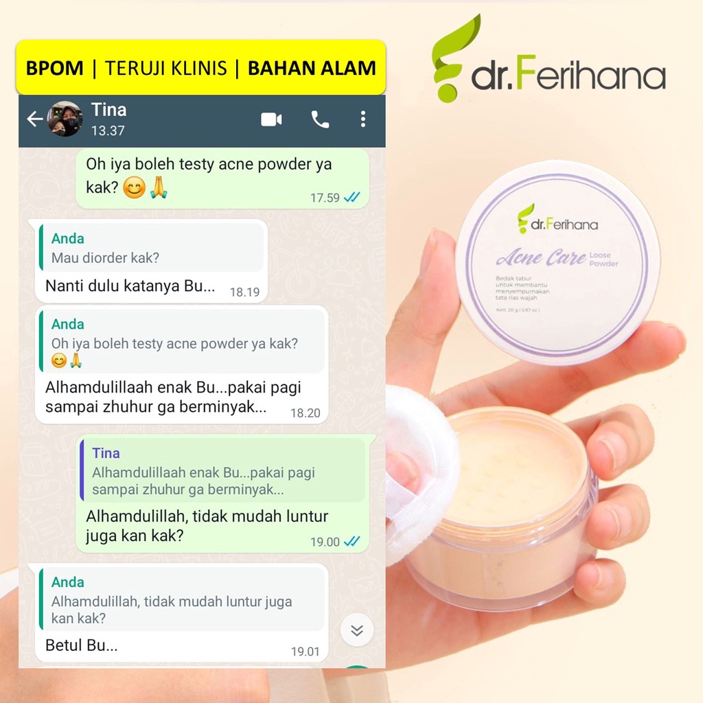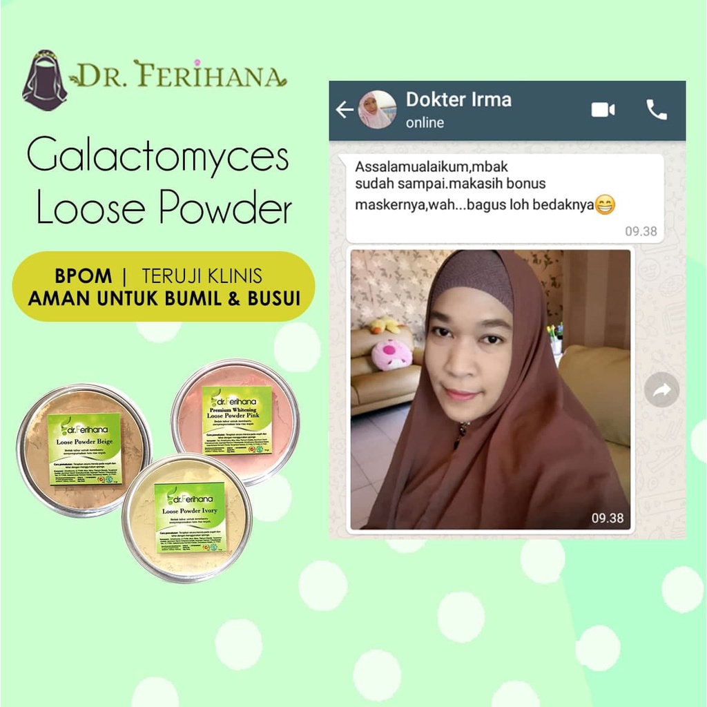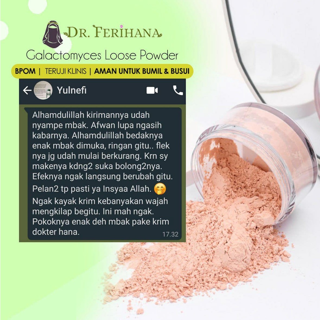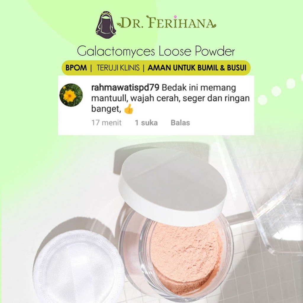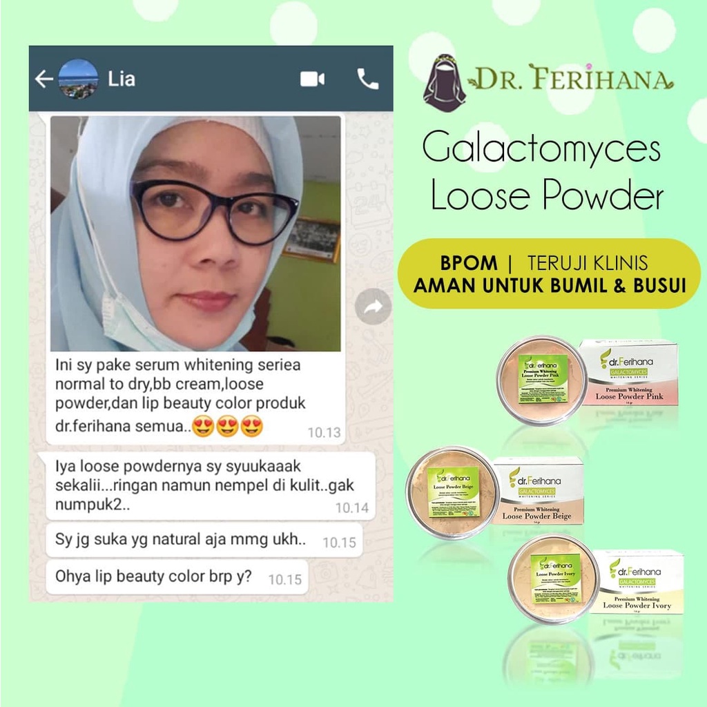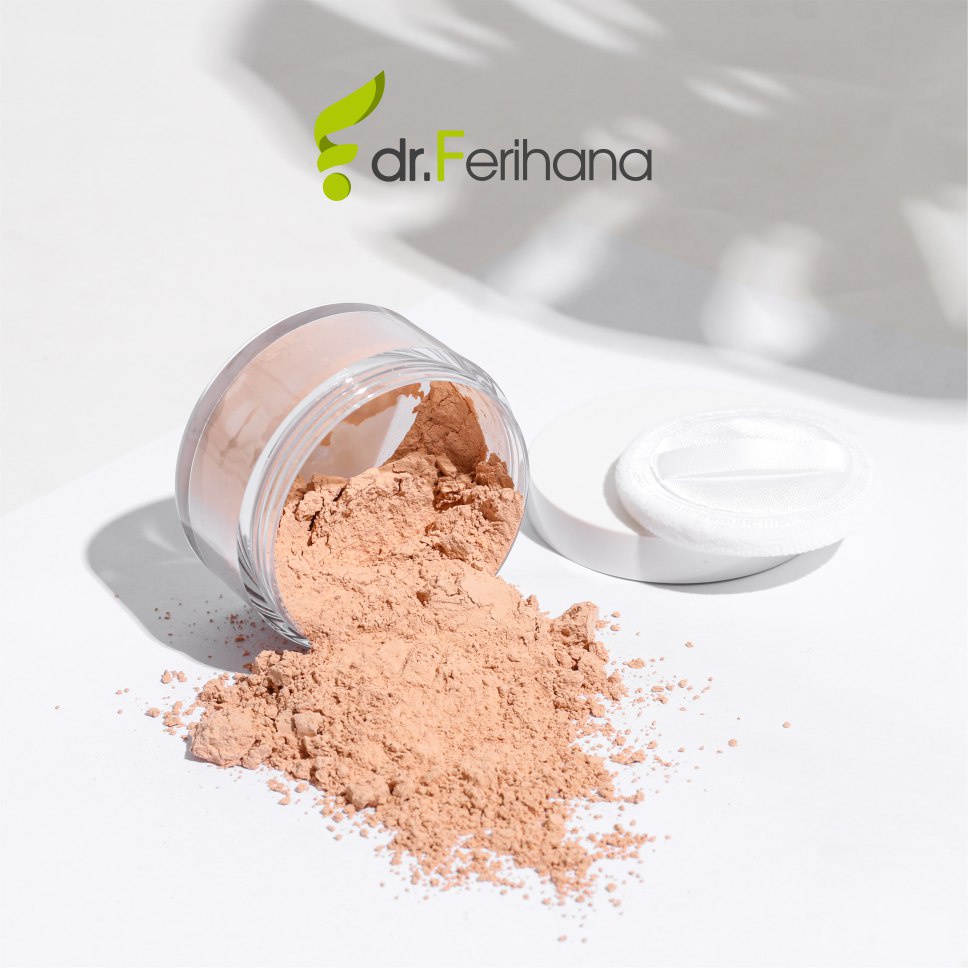 Premium Whitening Loose Powder Translucent dr. Ferihana Cosmetics & Skincare Bedak Tabur dengan Teksture Lembut tidak Menutup Pori Pori cocok untuk kulit Normal Kering Berminyak Berjerawat Sensitif