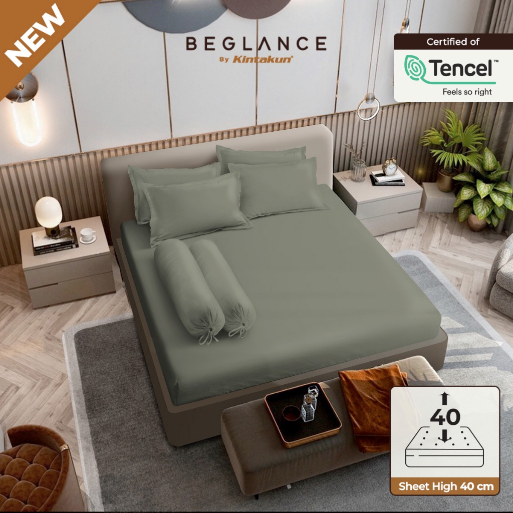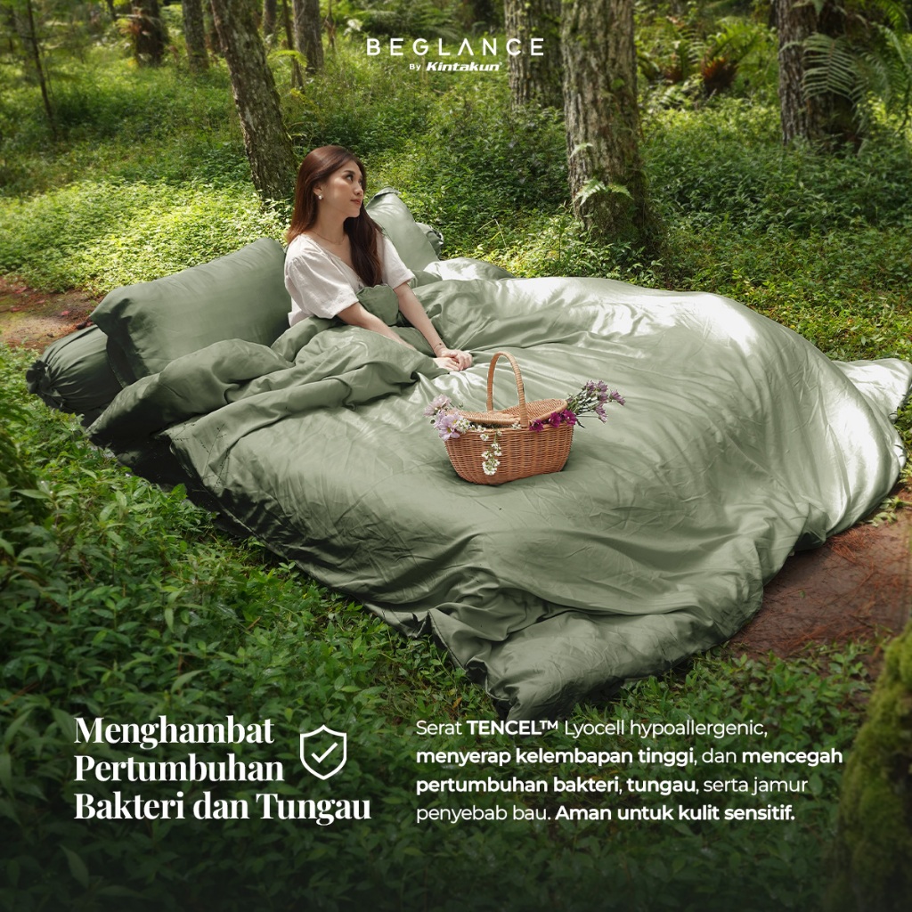 BEGLANCE Tencel Lyocell Sprei Set Fitted 160 x 200 / 180 x 200 / 200 x 200 Shy Green Polos Super Soft Premium Tinggi 40 cm