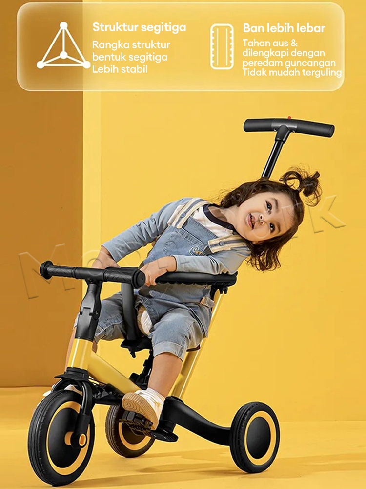 BEIGE Sepeda Anak Roda 3 Laki Laki 2IN1 Balance Bike Push Bike Usia 1-5 Tahun Dilipat Serbaguna