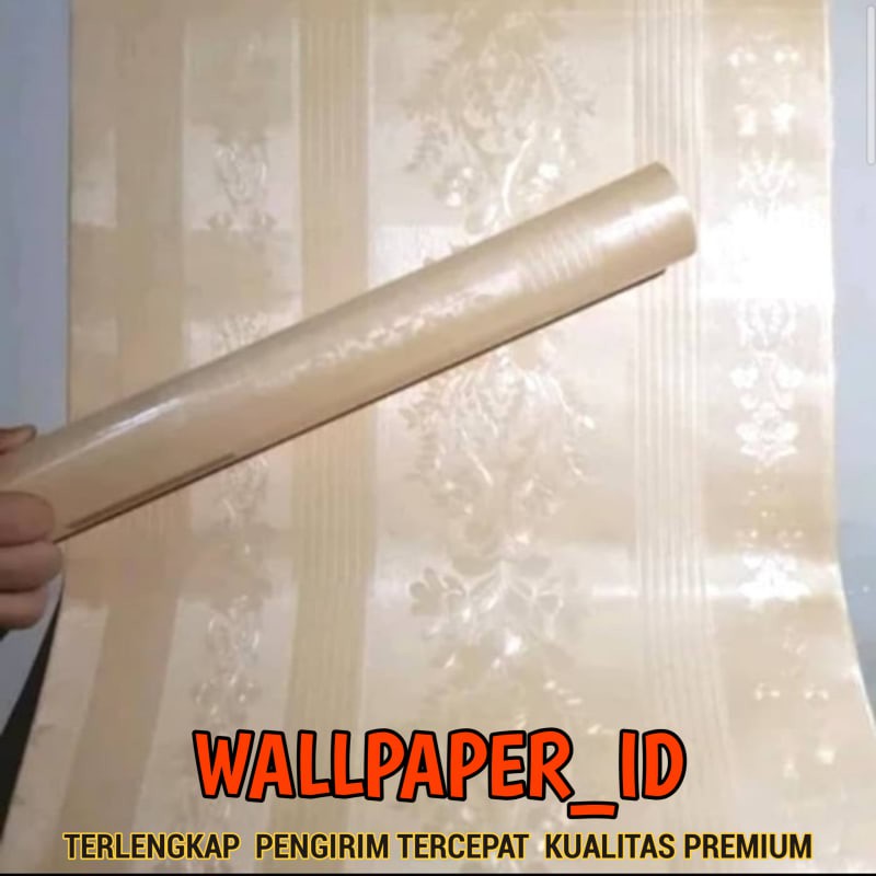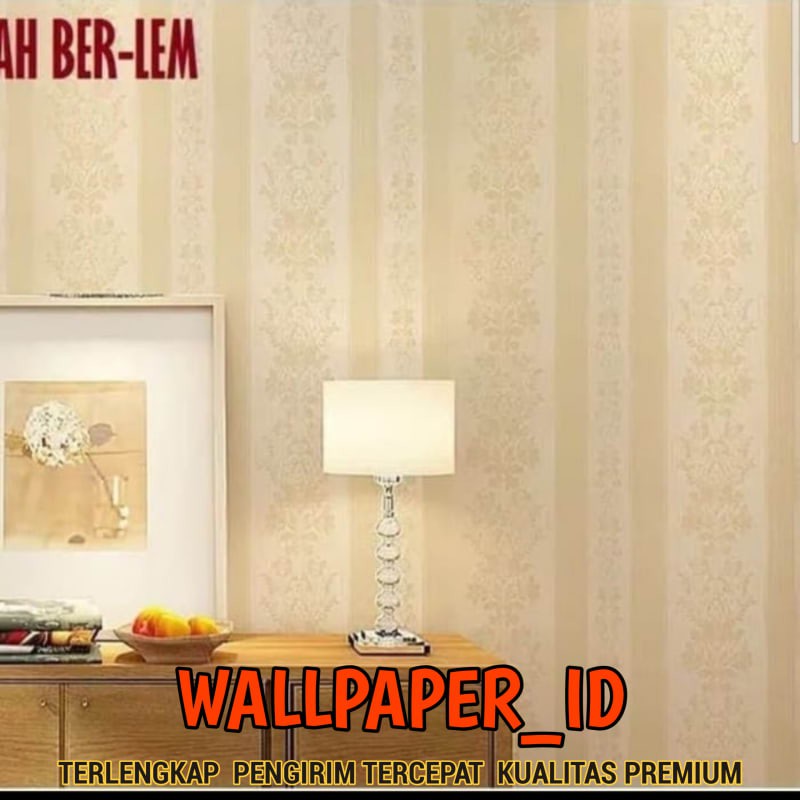 BELI 5 GRATIS 1 Wallpaper Sticker Dinding Krem Polos Bertekstur Salur Bunga PREMIUM wallpaper dinding ruang tamu