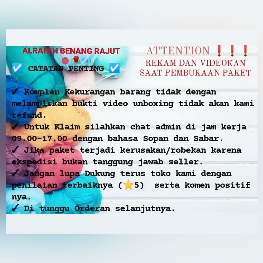 BENANG RAJUT FILAMENT PREMIUM (PILIH WARNA)