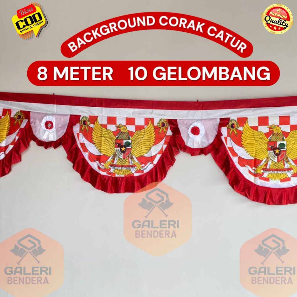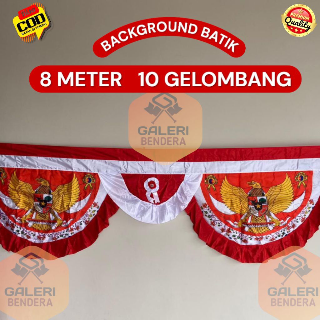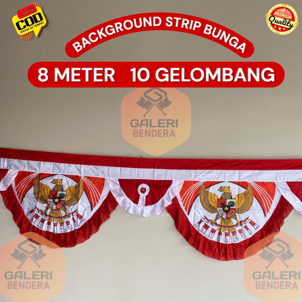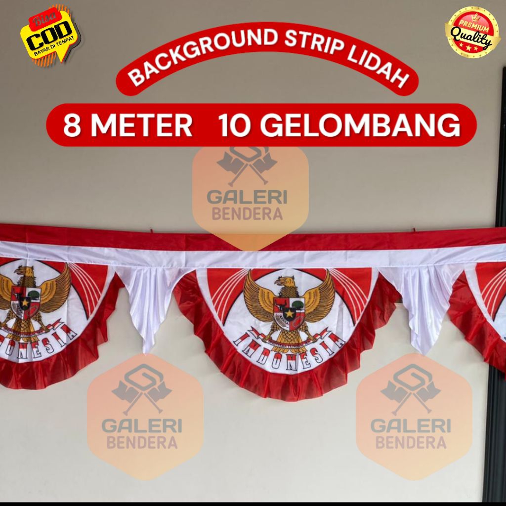 BENDERA BACKROUND UMBUL UMBUL GELOMBANG STRIP LIDAH 8 METER 10 GELOMBANG