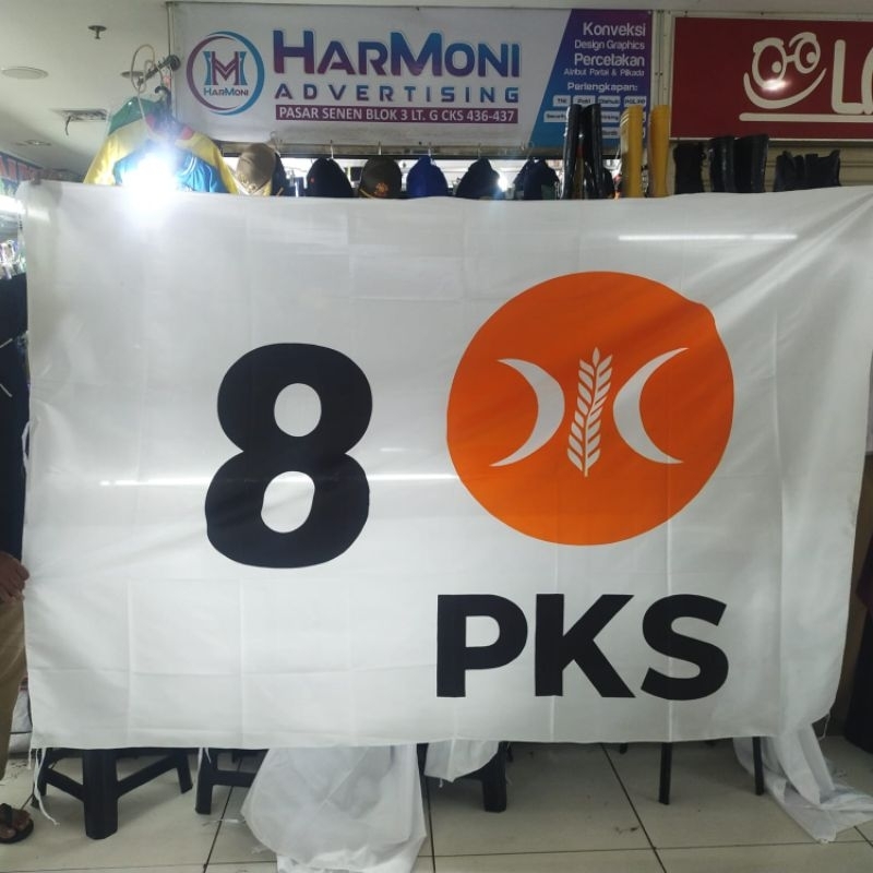BENDERA PARTAI PKS UKURAN 225 DENGAN NO URUT BENDERA JUMBO 2X3 M