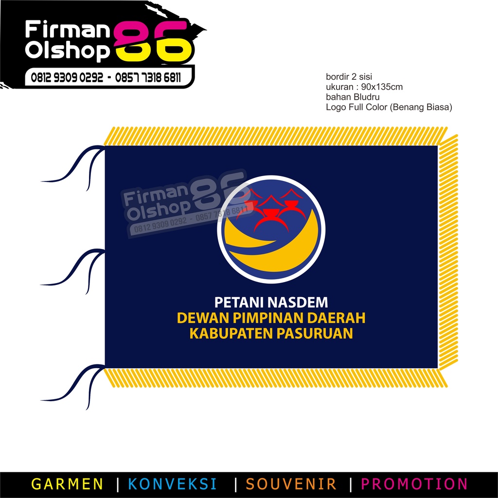 BENDERA PATAKA PETANI NASDEM NASDEM BAHAN BLUDRU UKURAN 90X135CM BORDIR 2 MUKA