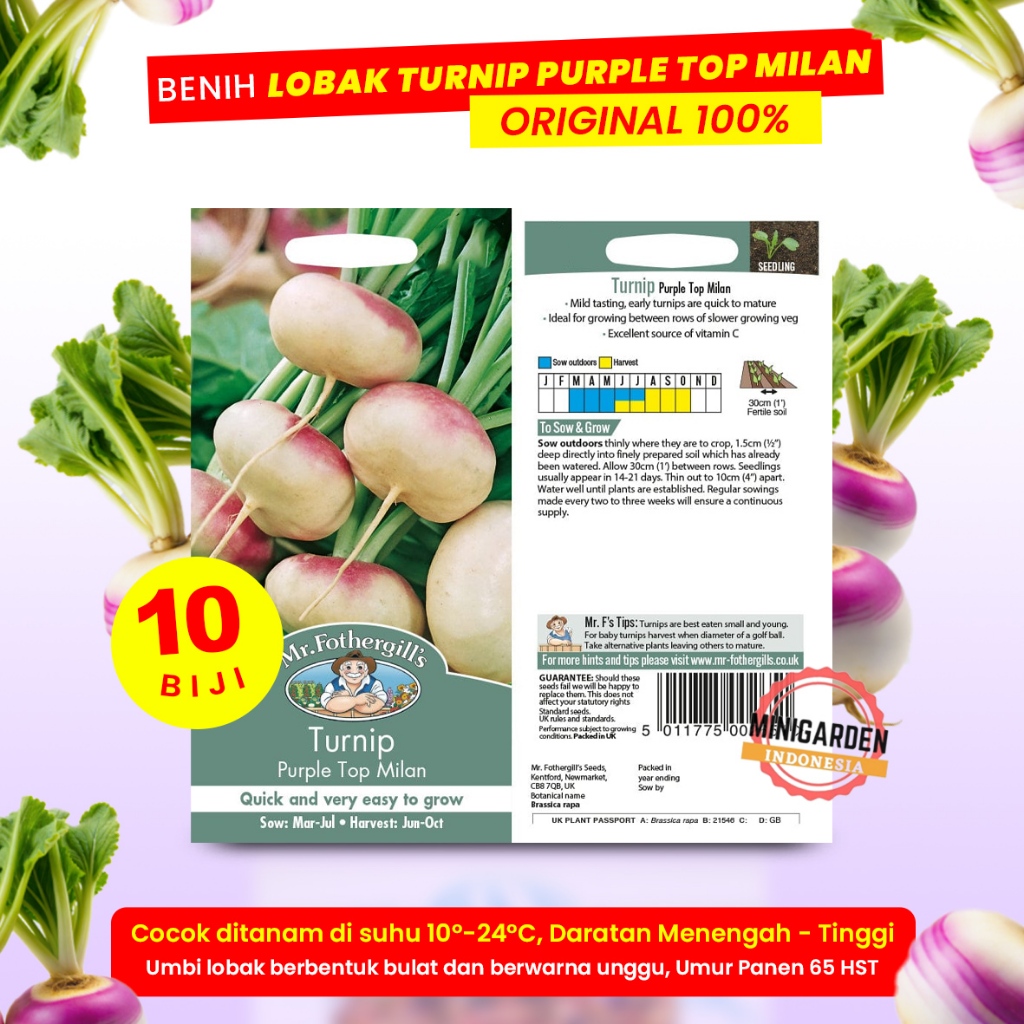 BENIH LOBAK TURNIP PURPLE TOP MILAN 10 BIJI bibit sayur buah lobak putih ungu import f1 Mr. Fothergills
