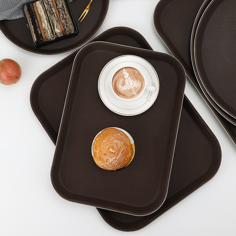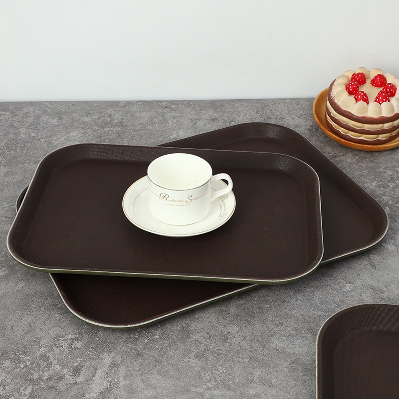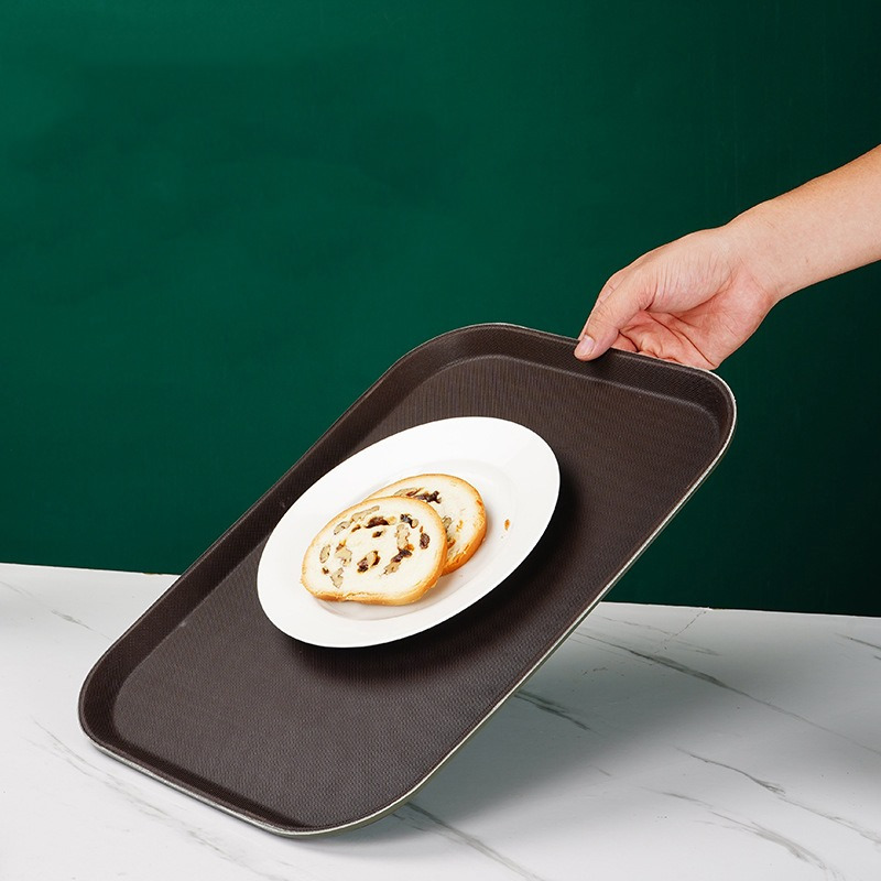 BERINDO Nampan Persegi Anti Slip Karet Polos Tebal 35x25cm | Square tray | Baki Kotak Tray Besar Tatakan Piring Gelas | Baki Hotel Restoran Coklat Non Slip Tray
