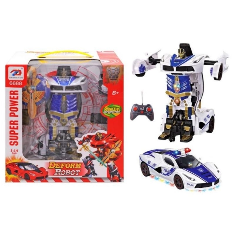 BESAR! ROBOT MOBIL POLISI TRANSFORM (Mainan Anak Remot Kontrol RC Police Car Remote Control Deformed Kid Toy)