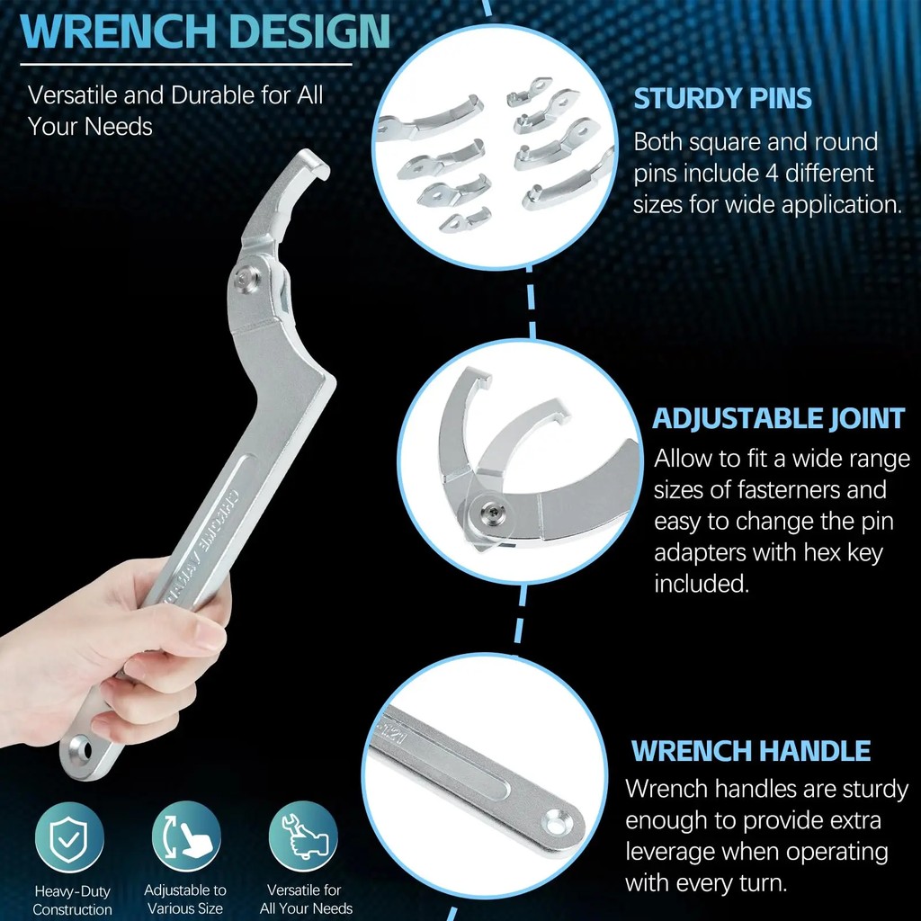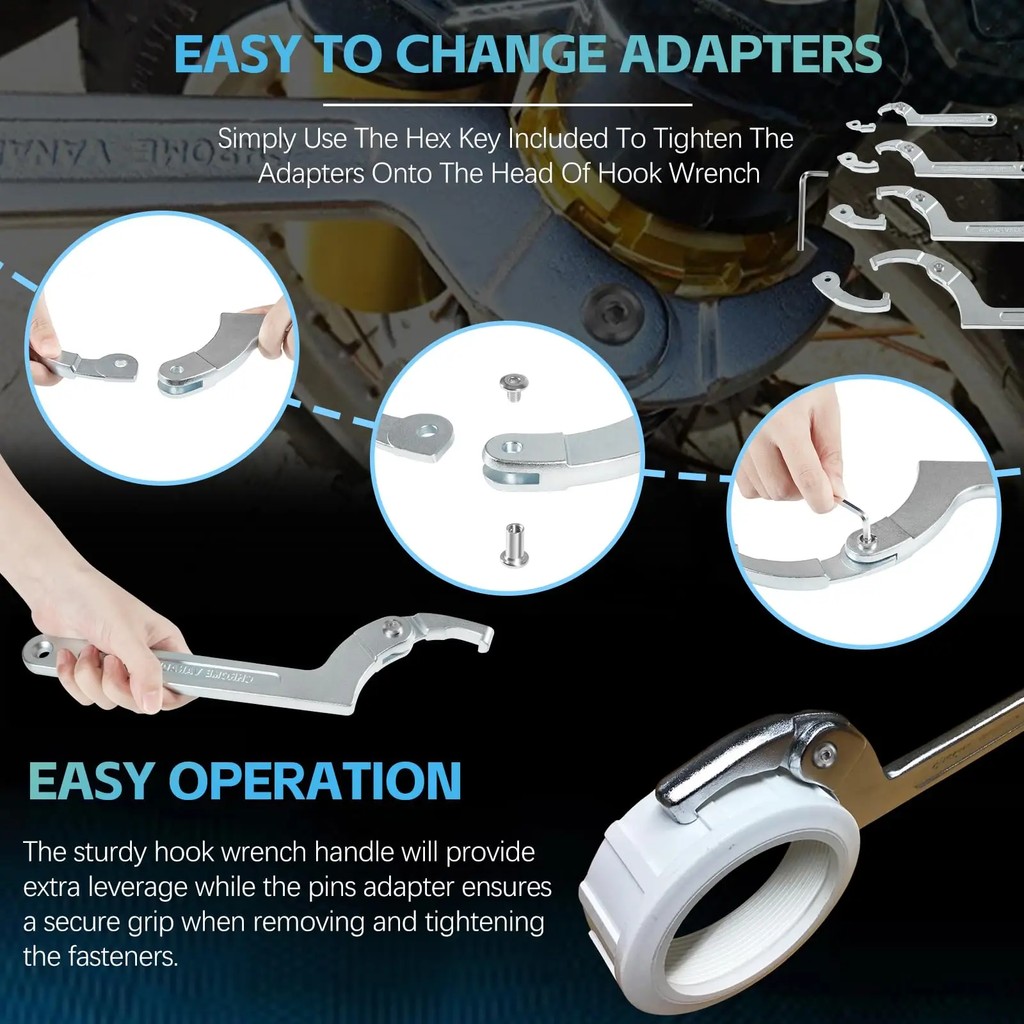 BEST Adjustable Pin Spanner Wrench Tool Set Coilover Hook Wrenches with Changeable Head for Suspension Collar Nut Adjust 3/4"-6-1/10"