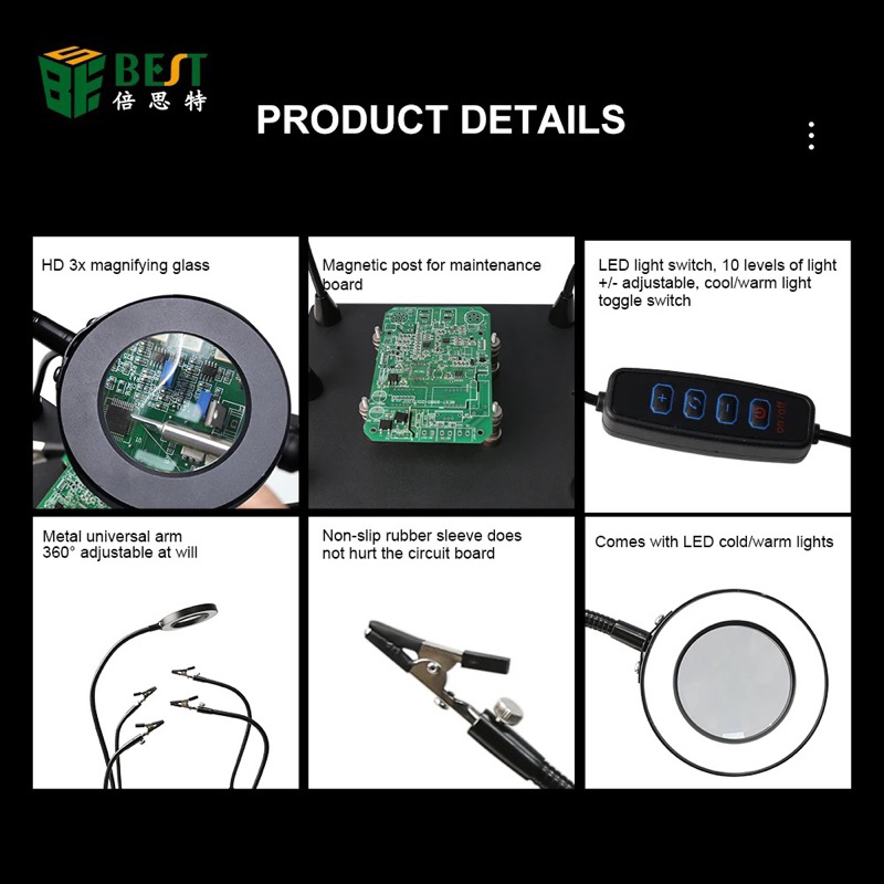 BESTOOL Best Tool BST-168L Solder Station PCB Soldering Repair Platform LED Magnifying Glass for BGA motherboard Welding Light Magnifier Electronic Maintenance | 2.029.0143 | BST-168L