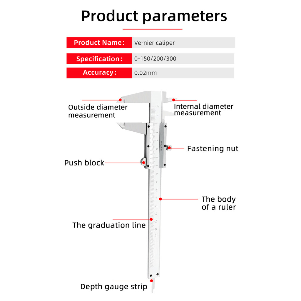 BEST SELLER Carbon Steel Vernier Caliper 0-150mm 0-200mm 0-300mm Locking Screw Vernier Caliper Stainless Steel by BeBosLook