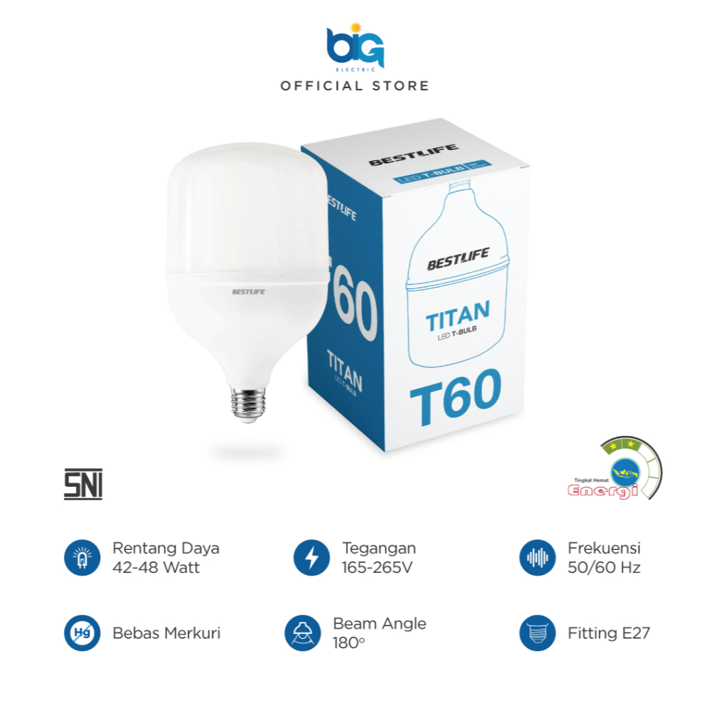 BESTLIFE Lampu LED T Bulb Titan 5W / 10W/ 15W / 20W / 30W / 40W / 50W / 60W Putih 6500K