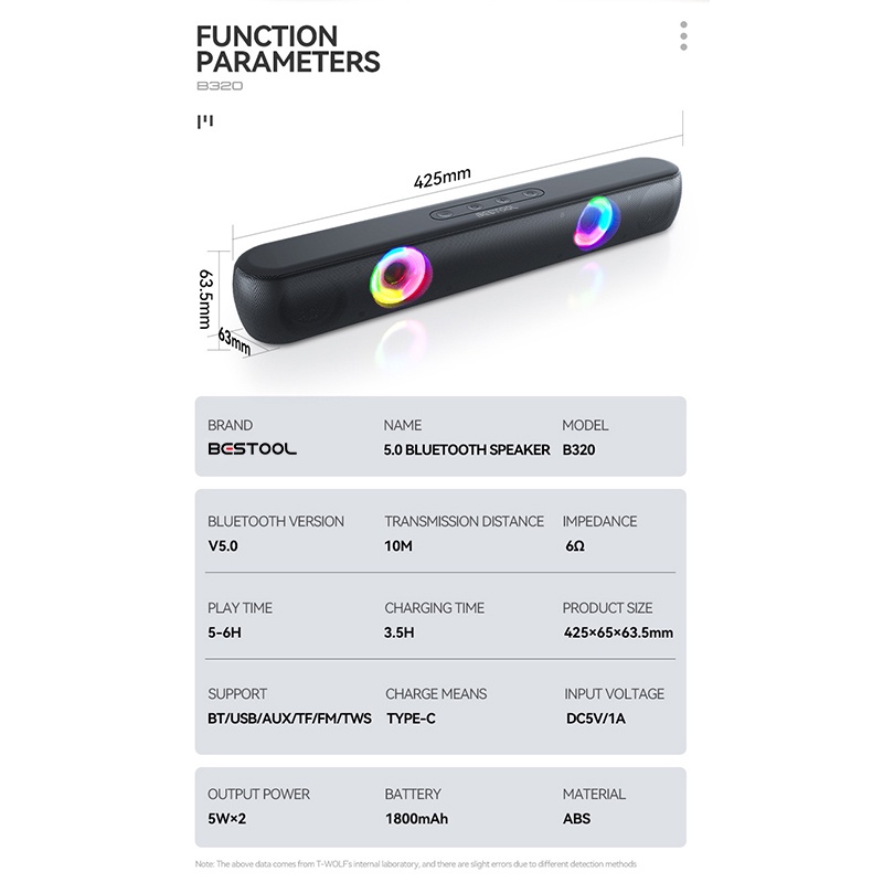 BESTOOL Speaker Bluetooth B320 Bluetooth 5.0 AUX TF Card Flashdisk Portable Audio Wireless Super Bass Mini Stereo