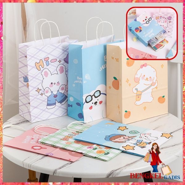 BG Paperbag Karakter Kartun Beruang Lucu Goodie Bag Motif Rabbit & Bear Tas Jinjing Serbaguna Bingkisan Hadiah Hampers Ulang Tahun Anak Kotak Souvenir Kantong Tentengan Bingkisan Paper Bag Kertas Mini Lucu Aesthetic