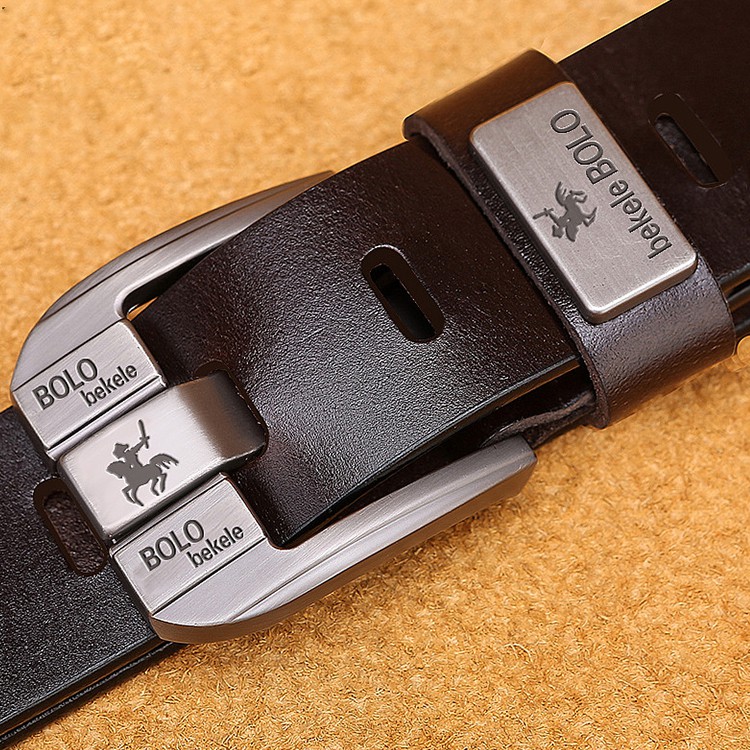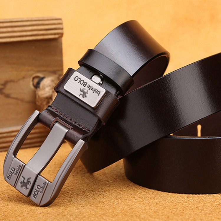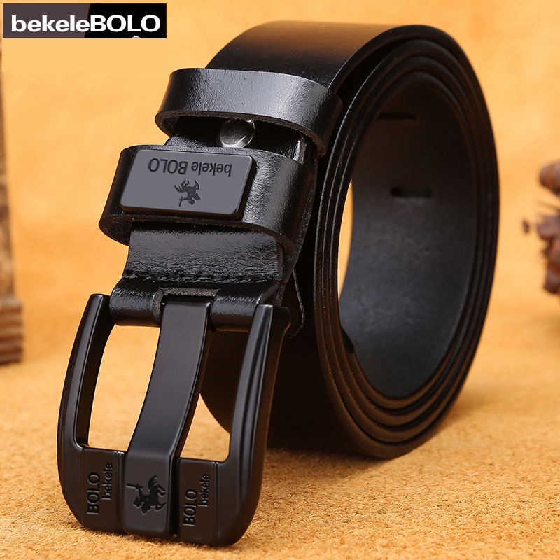 BGS-010 Sabuk Pria, Tampan Fashion, Sabuk Kulit Sapi 2lapisan, Gaya Kancing Pin Klasik Sabuk