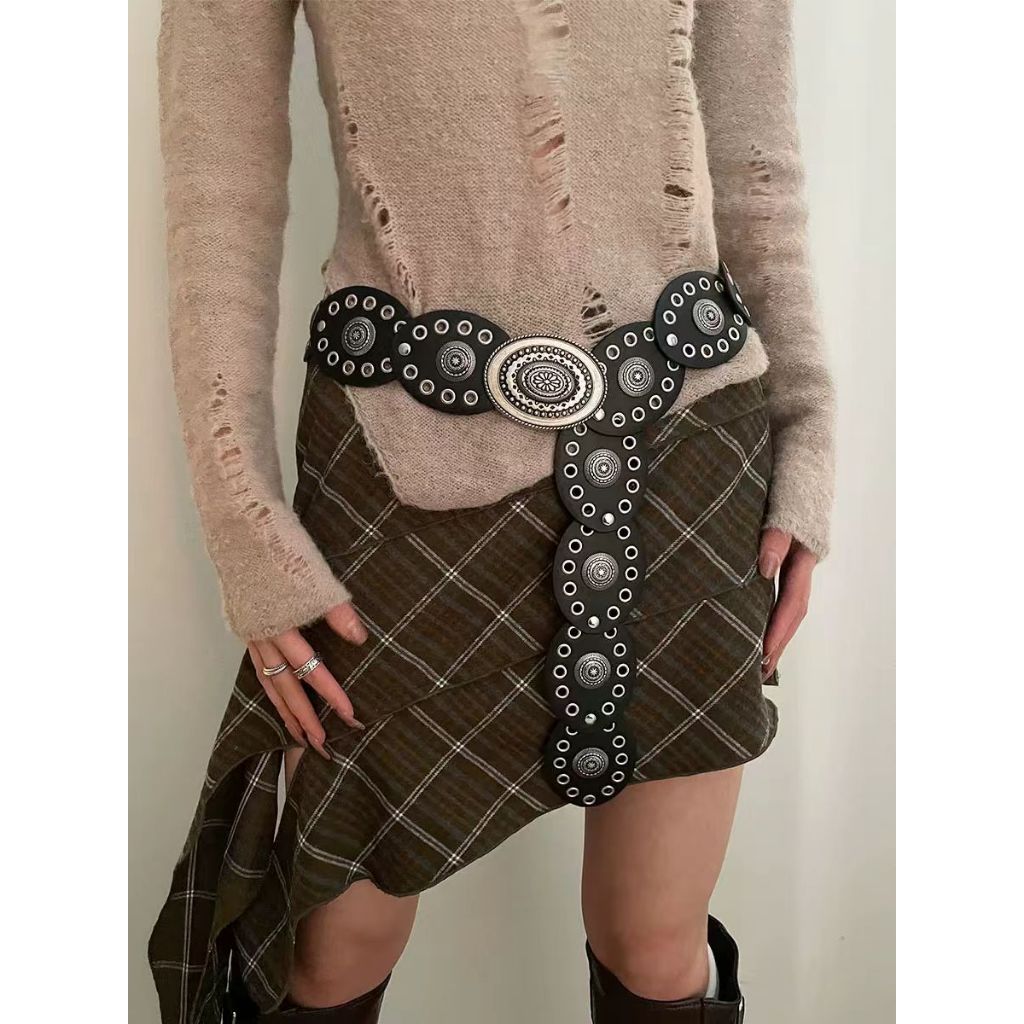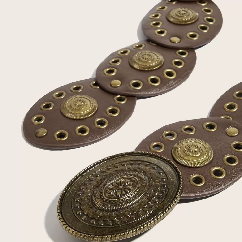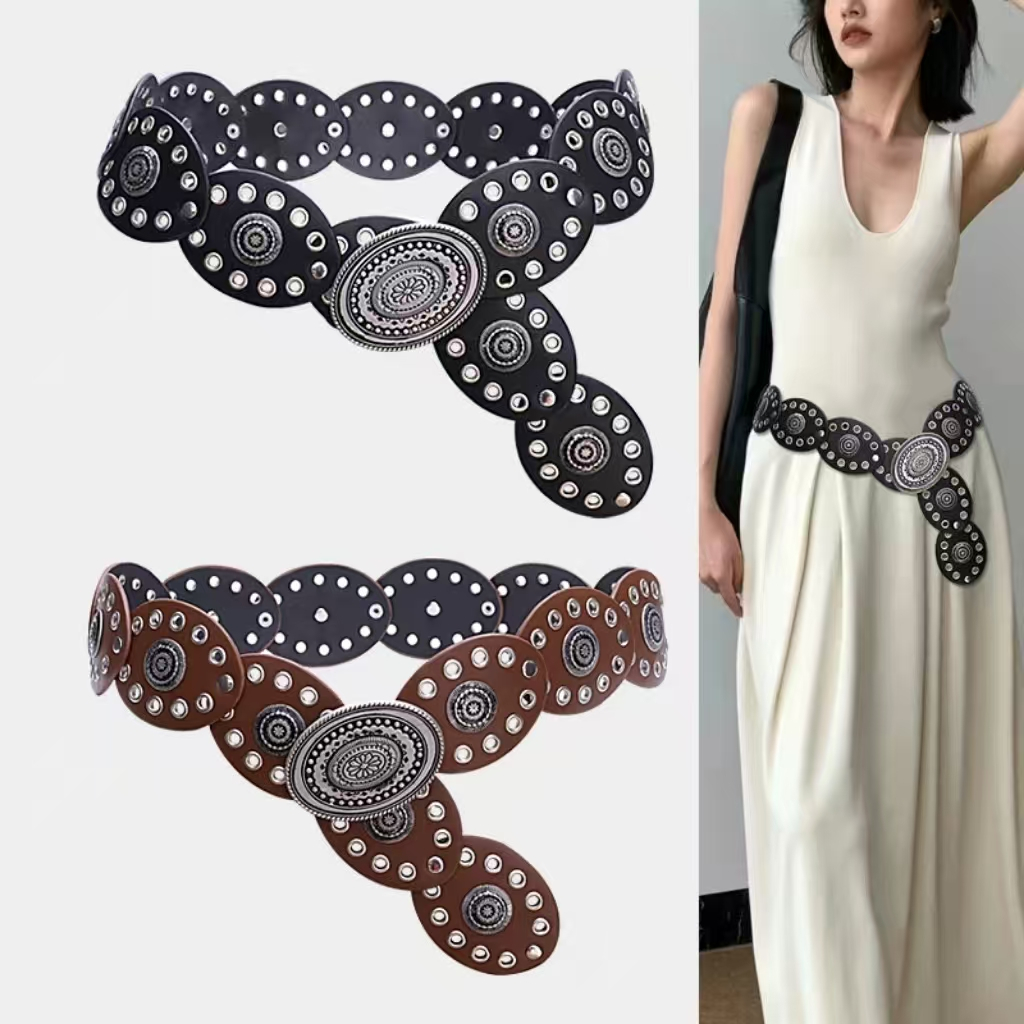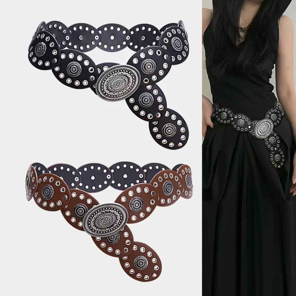 BGS-636 Ikat Pinggang Wanita Logam Fashion Belt y2k Style / Sabuk Vintage Lebar Model Oval Boho