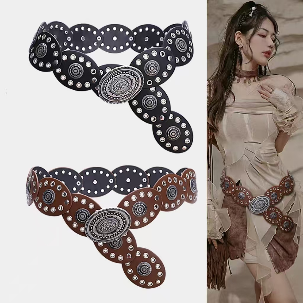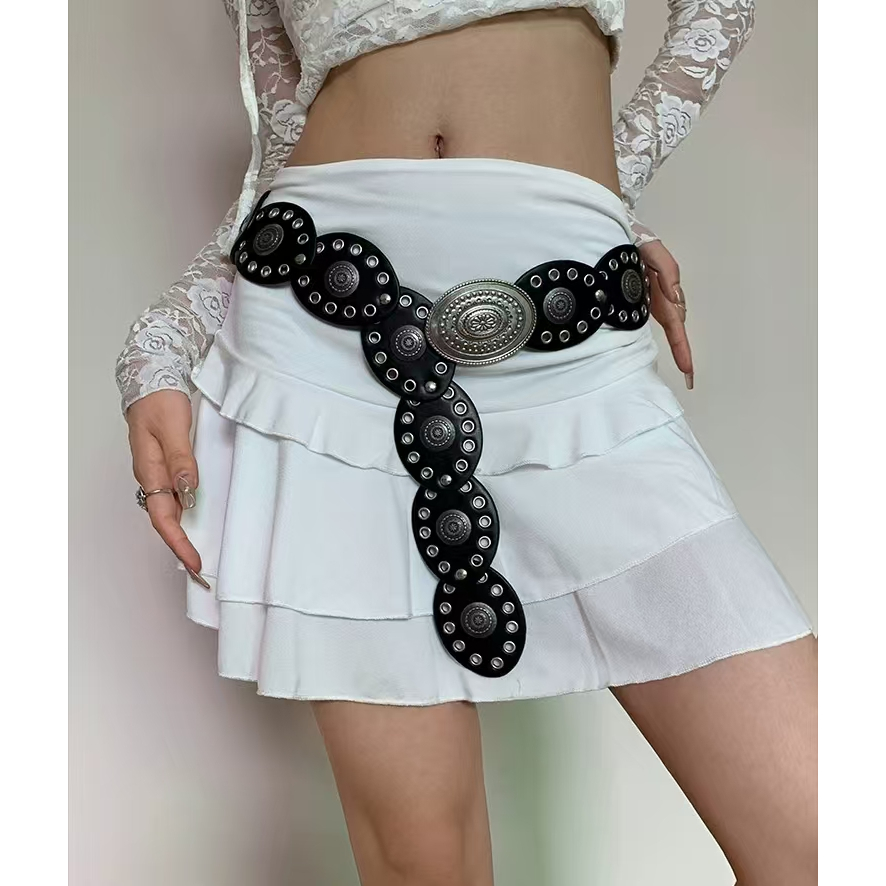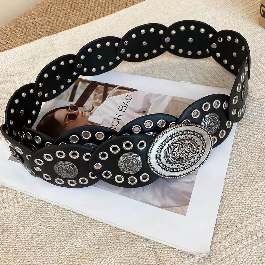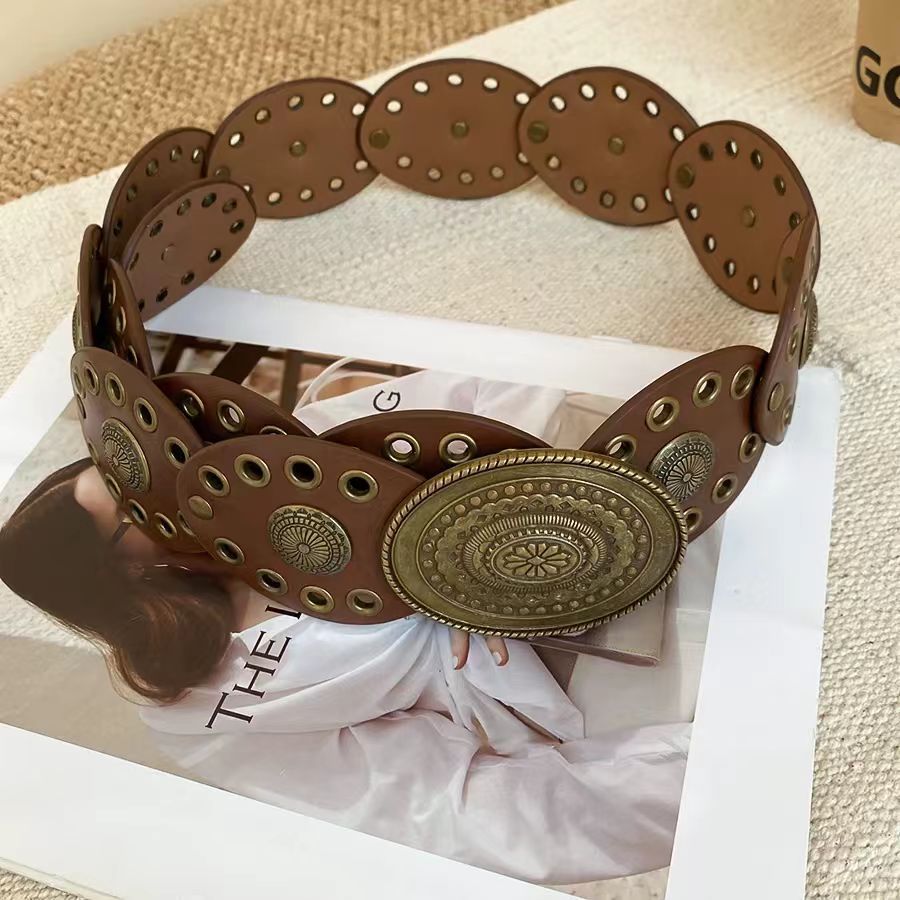 BGS-636 Ikat Pinggang Wanita Logam Fashion Belt y2k Style / Sabuk Vintage Lebar Model Oval Boho