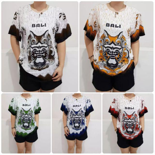 BH148 meygrosir Baju bali mahal rayon putih XXL motip garis