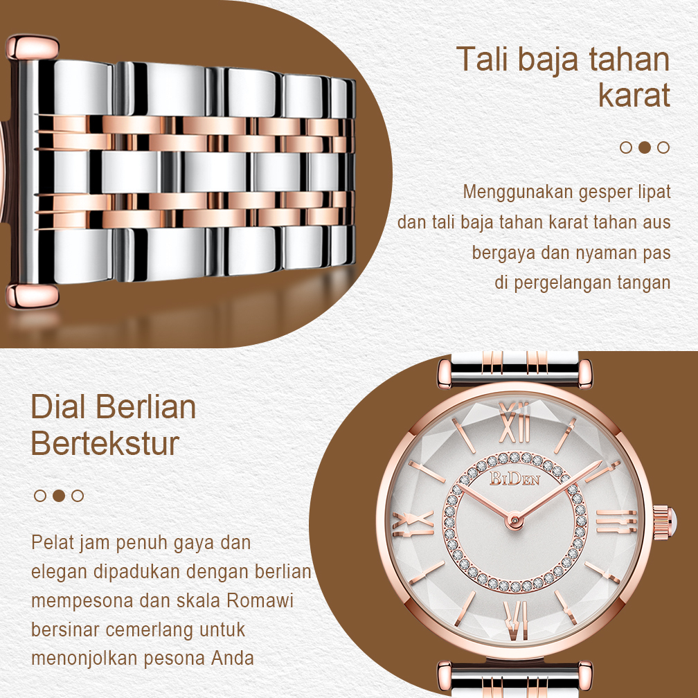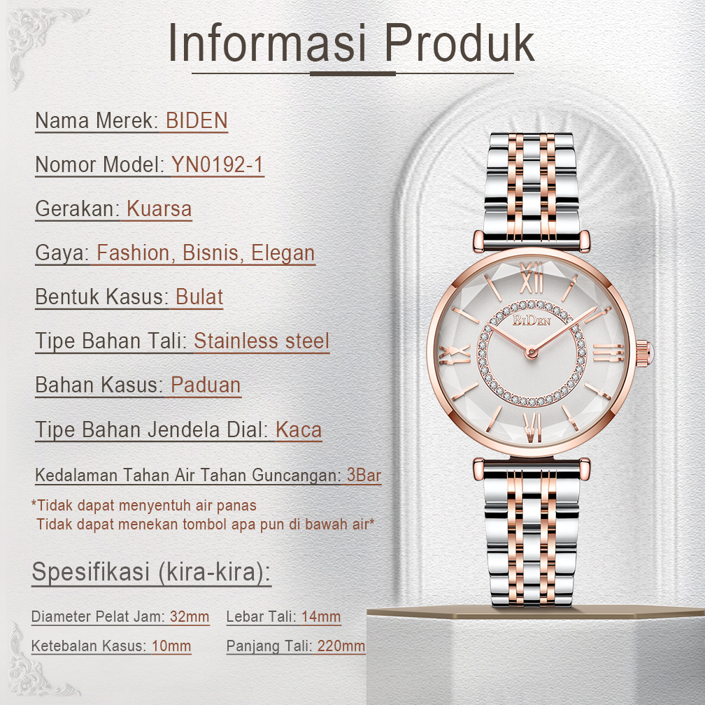 BIDEN Jam Tangan Wanita 0192 Anti Air Original Korea Jam Tangan Cewek Santai Tali Stainless Steel Kuarsa