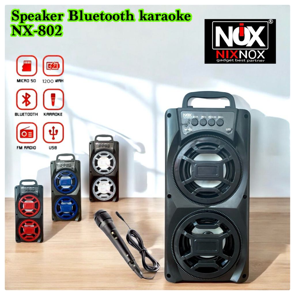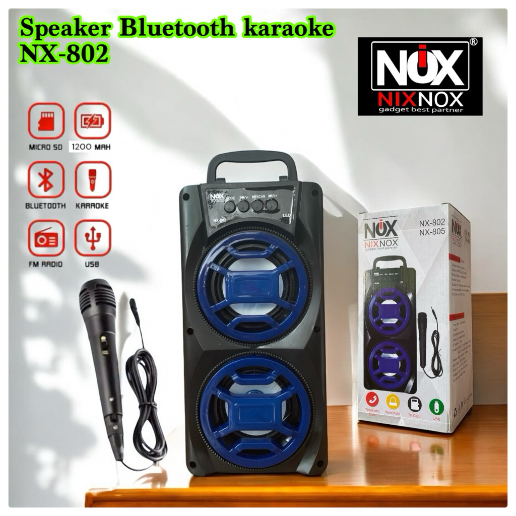 BIG BASS Speaker bluetooth nixnox NX-802 FREE MIC speaker karaokr termurah big bass
