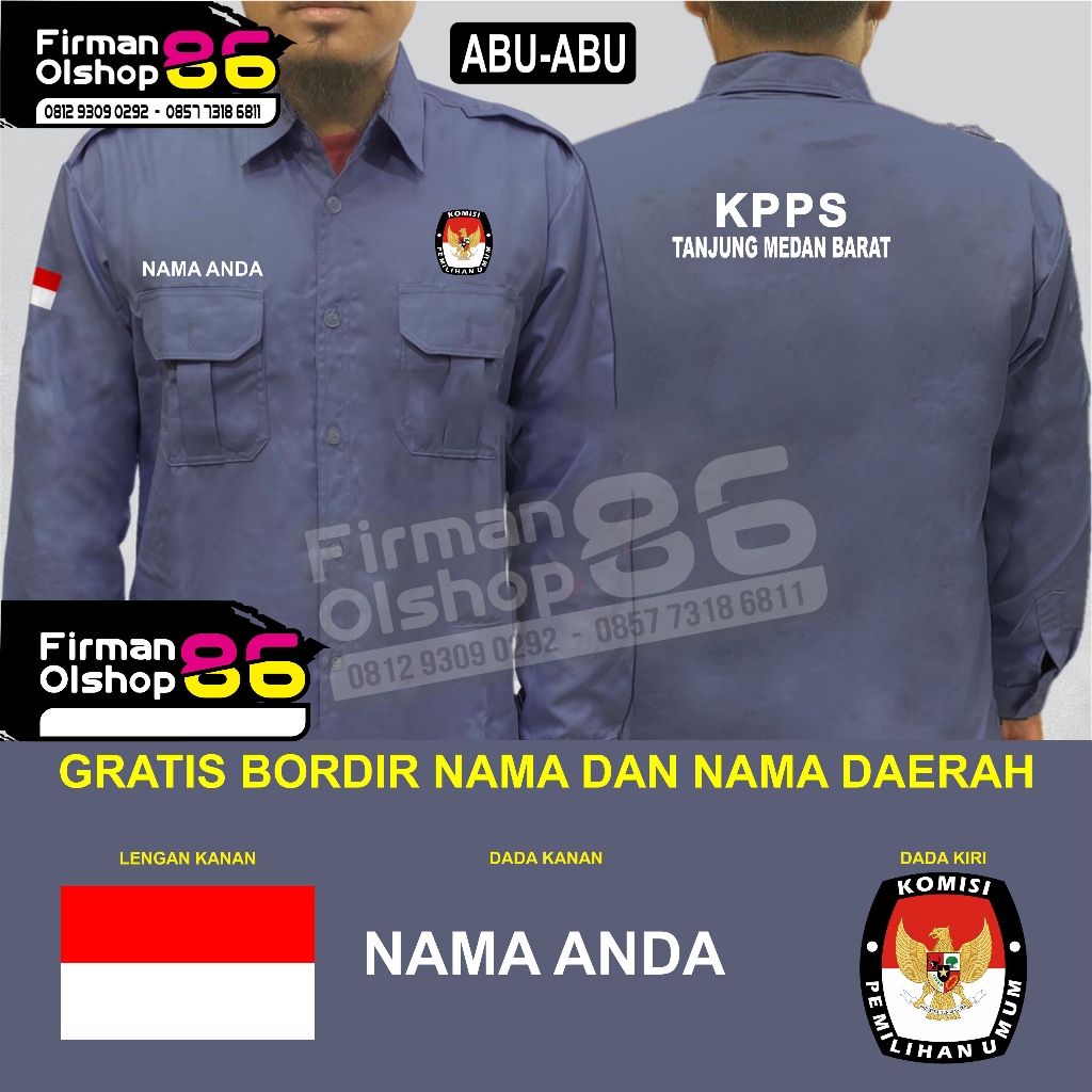 BIG SIZE Kemeja KPPS LENGAN PENDEK baju KPPS LENGAN PANJANG KPPS kemeja KPPS Kelompok penyelenggara pemungutan suara seragam kerja KPPS 2024 PPS 2024 PPK 2024 KPU KEMEJA PEMILU 2024 ABU ABU