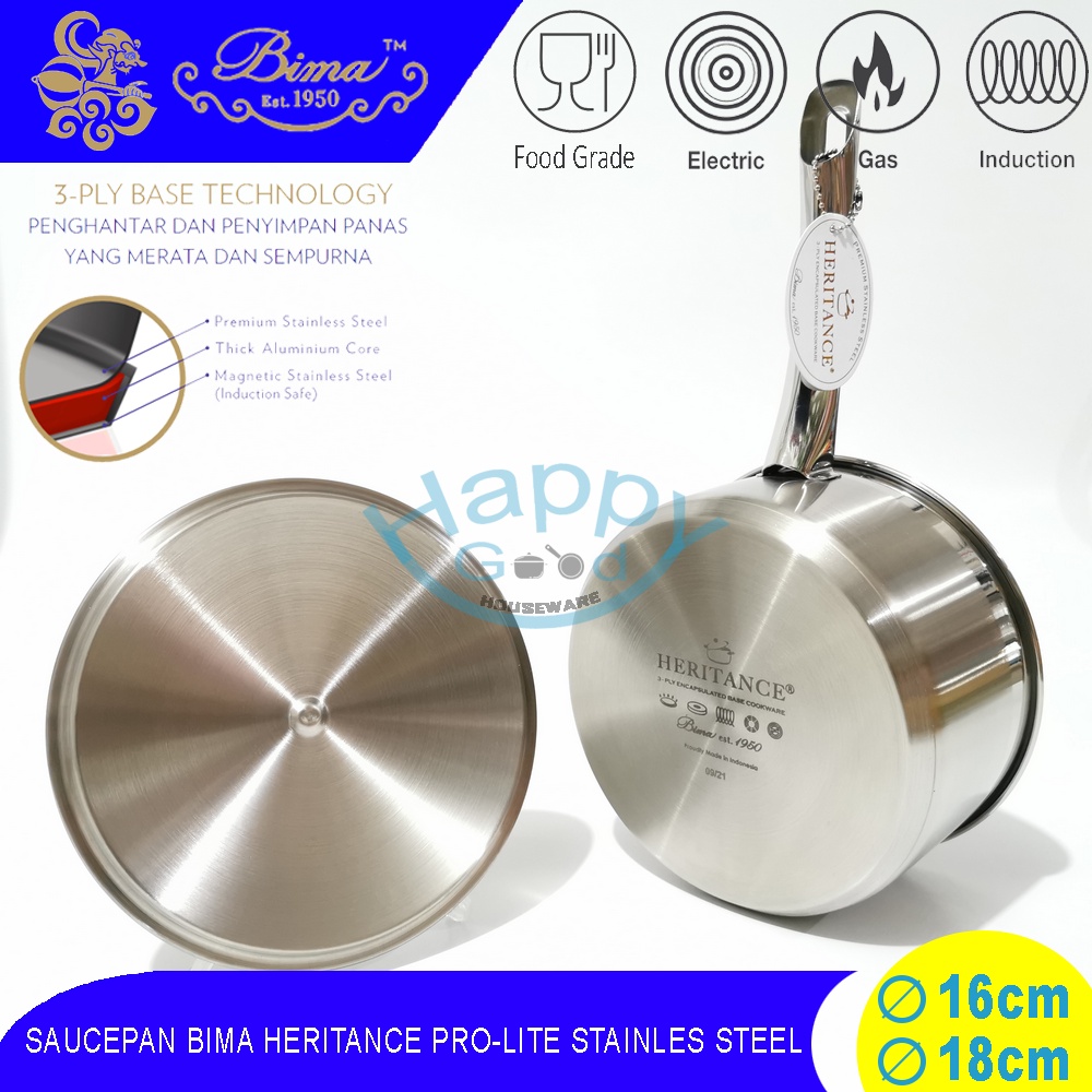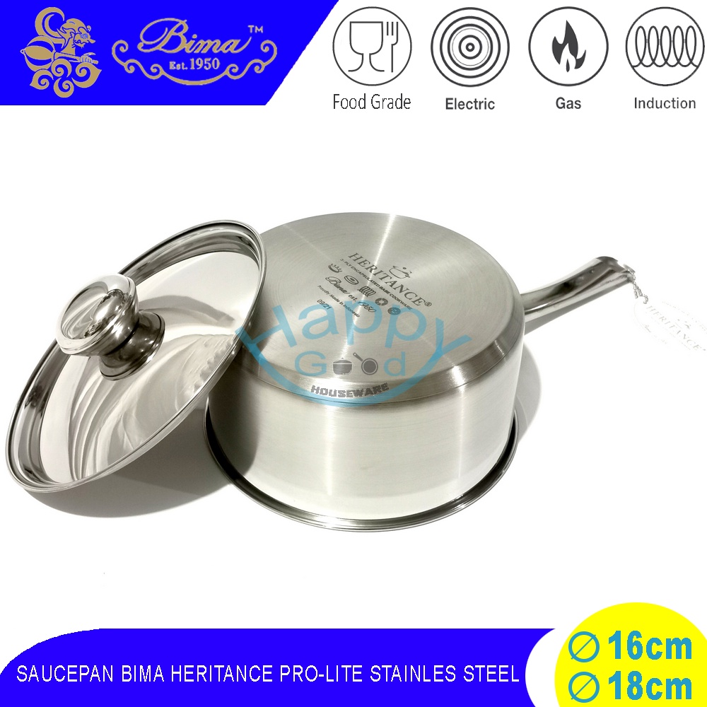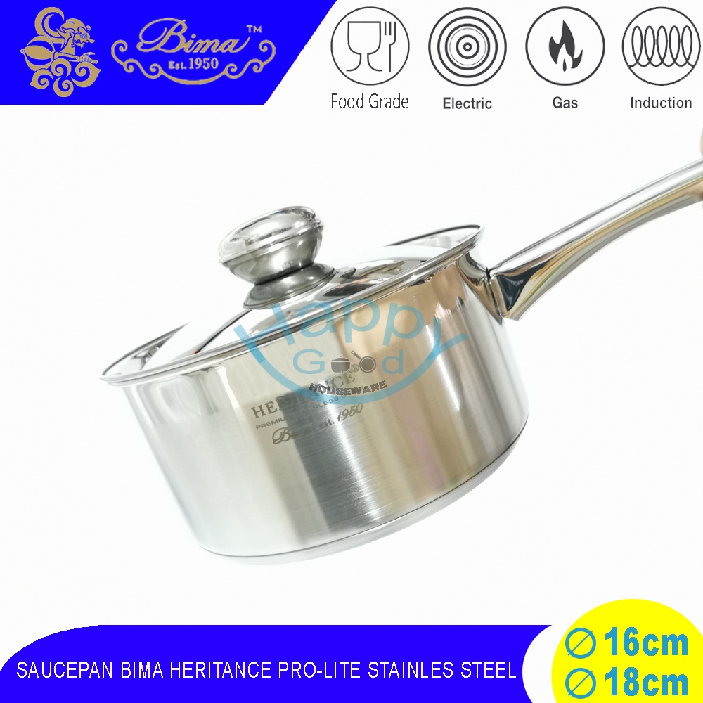BIMA HERITANCE PRO-LITE 16-18CM SAUCEPAN/PANCI STAINLESS STEEL DENGAN TUTUP SUS304