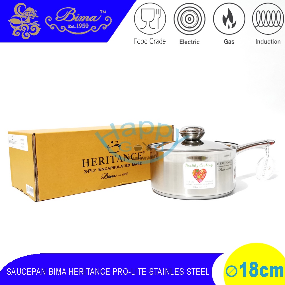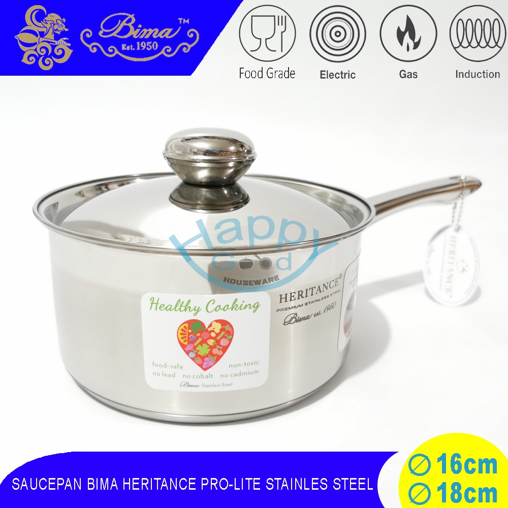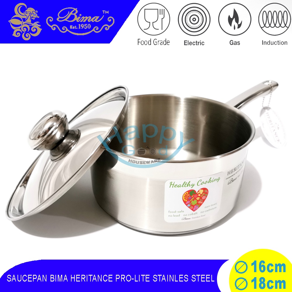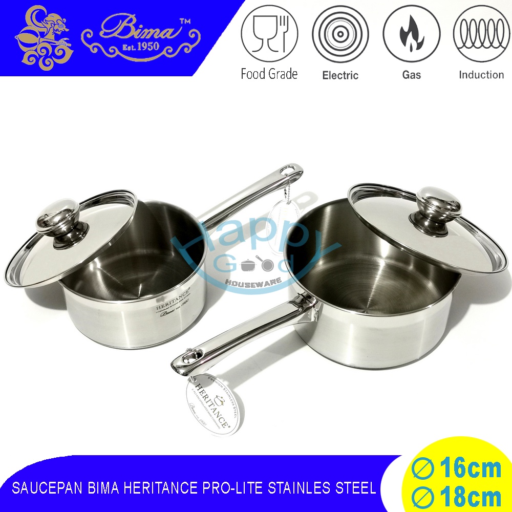 BIMA HERITANCE PRO-LITE 16-18CM SAUCEPAN/PANCI STAINLESS STEEL DENGAN TUTUP SUS304