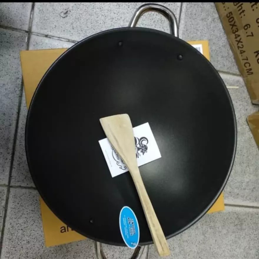 BIMA WAJAN BESI HITAM NONSTICK ANTI LENGKET KUALI FRY WOK TEBAL DAN KUAT KUALI BESI KUALI MASAK 26CM 30CM 40CM