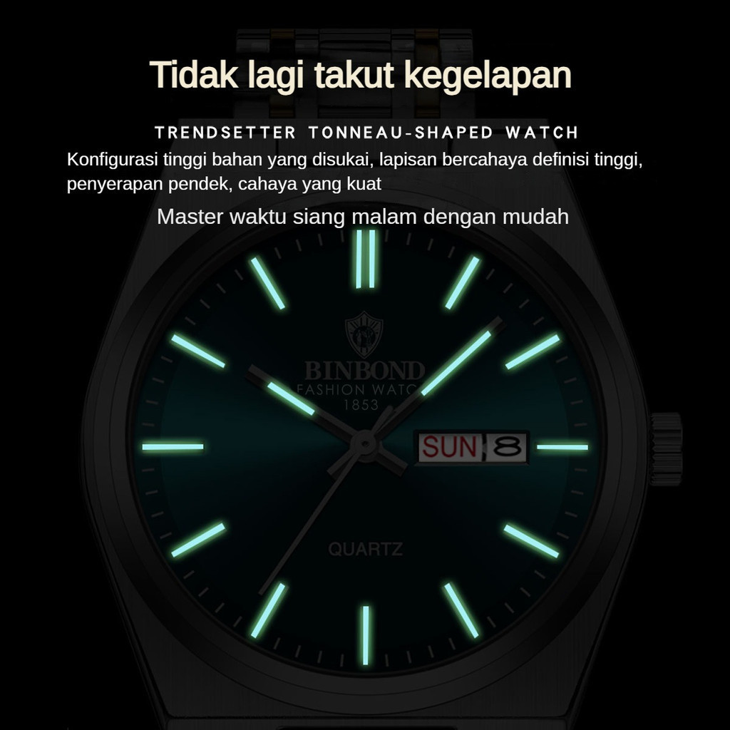 BINBOND Jam Tangan Quartz Kasual Bisnis Pria Model Baru Fashion Jam Tangan Tahan Air Kalender Bercahaya Malam Stainless Steel Jam Tangan Hari Ayah Ulang Tahun
