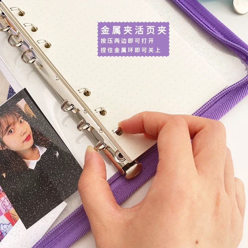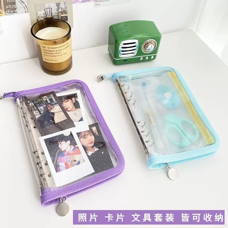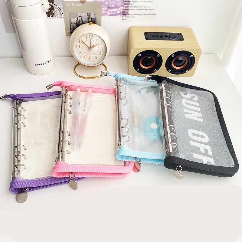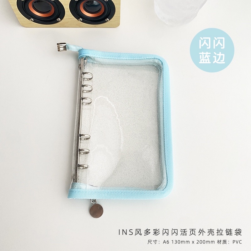BINDER ZIPPER GLITER TRANSPARAN WARNA A6
