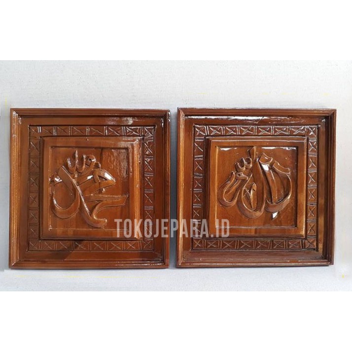 BINGKAI KALIGRAFI ALLAH MUHAMMAD BAHAN KAYU JATI