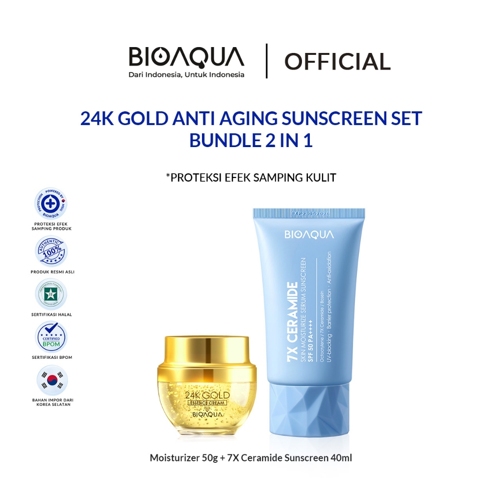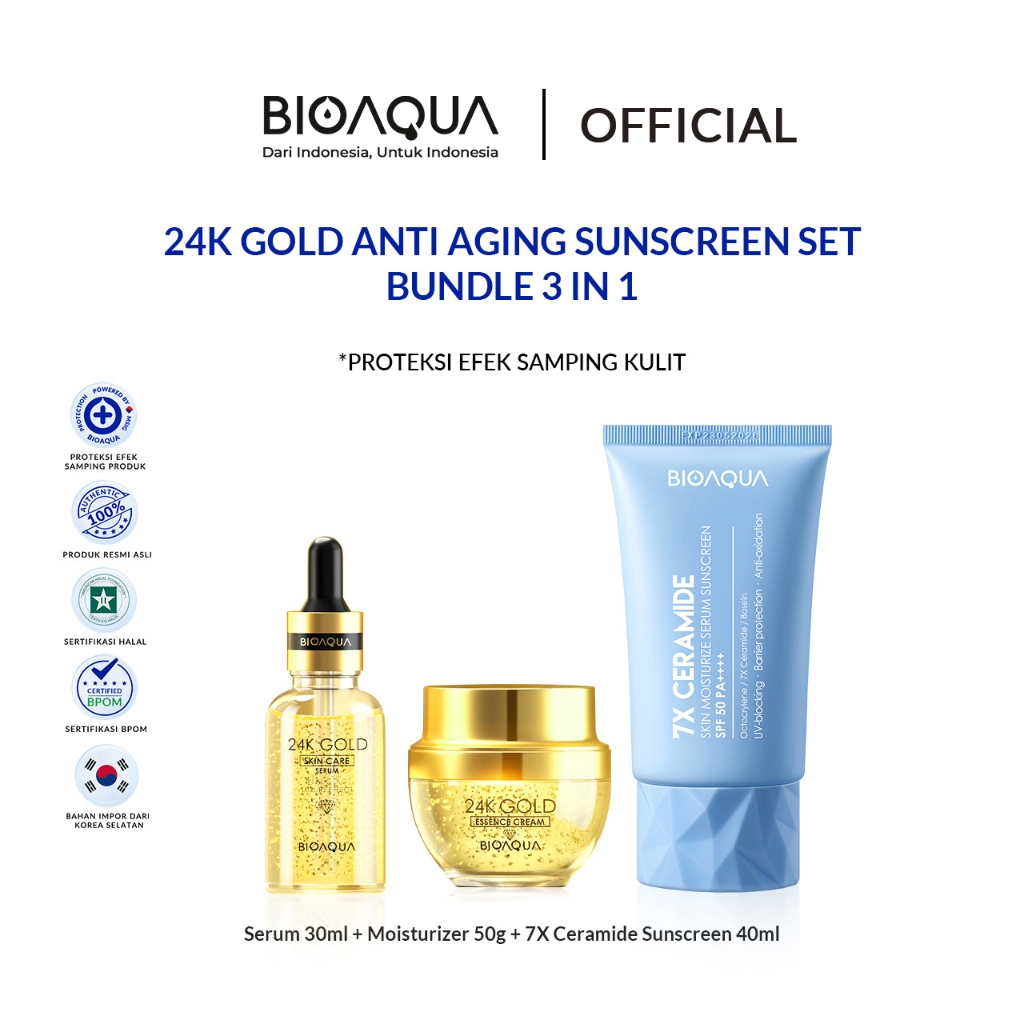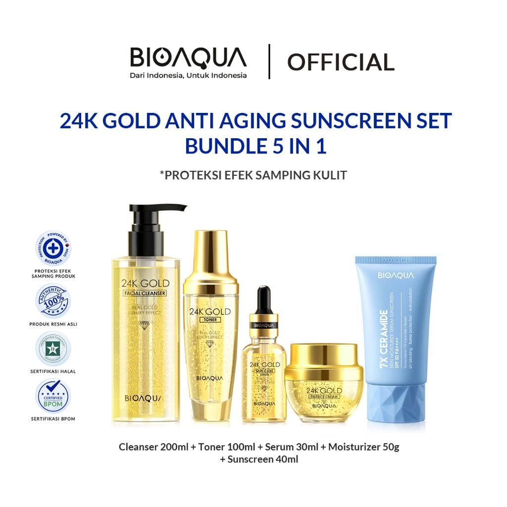 BIOAQUA 24K Gold Anti aging With Sunscreen Wajah / Brightening Serum Wajah Essence / Day & Night Pelembab Wajah Cream Krim / Hydrating Toner Wajah / Facial Wash Sabun Cuci Muka
