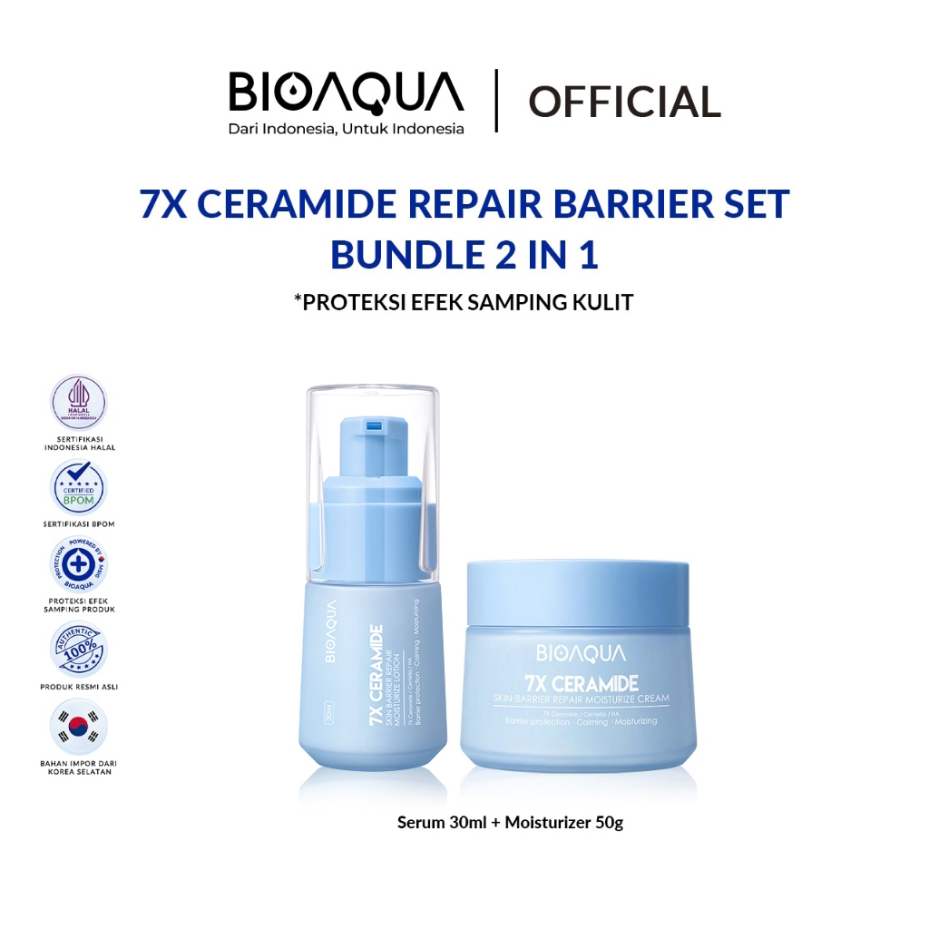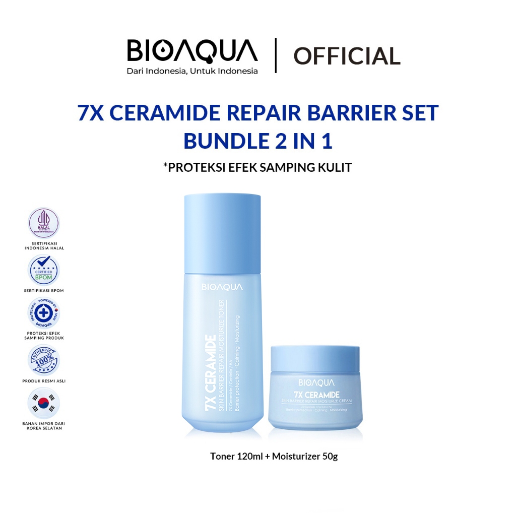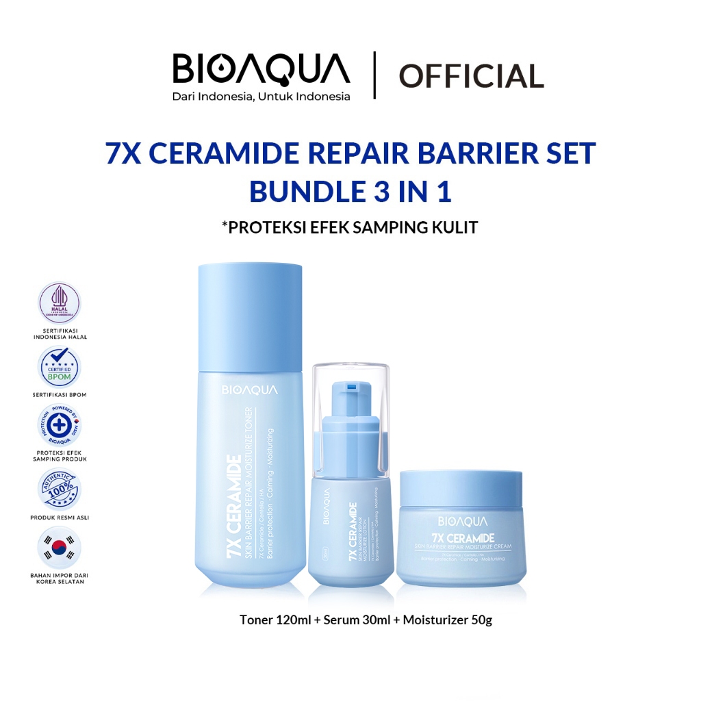 BIOAQUA 7X Ceramide Skincare Paket Repair Barrier Set With Moisturizer Cream/Hydrating Toner/Serum Wajah/Gentle Cleanser