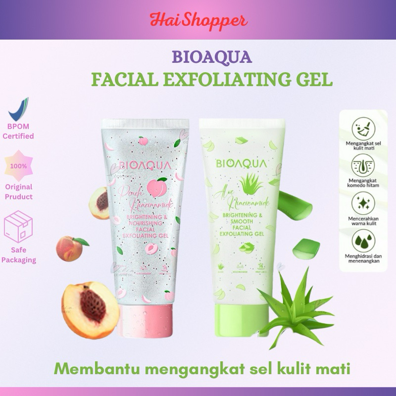 BIOAQUA Facial Exfoliating Gel 100Gr - Peeling Gel - Scrub Wajah | Bioaqua Exfoliating Peeling Gel | Perontok Daki | Mengangkat Sel Kulit Mati