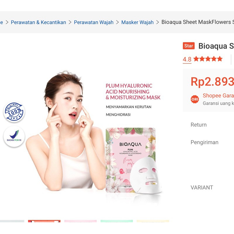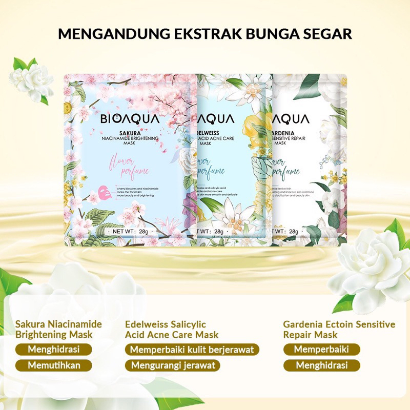 BIOAQUA Masker Wajah 28g - Menghidrasi, Mencerahkan, Menenangkan