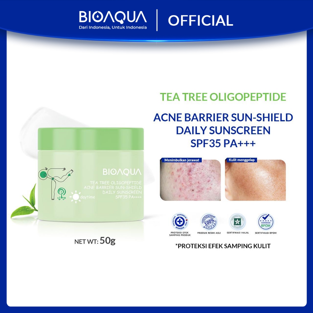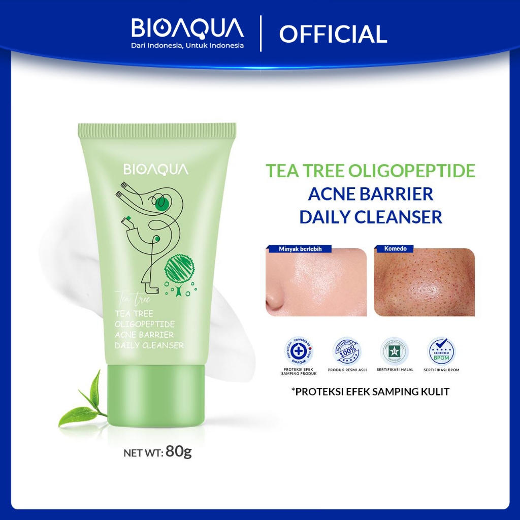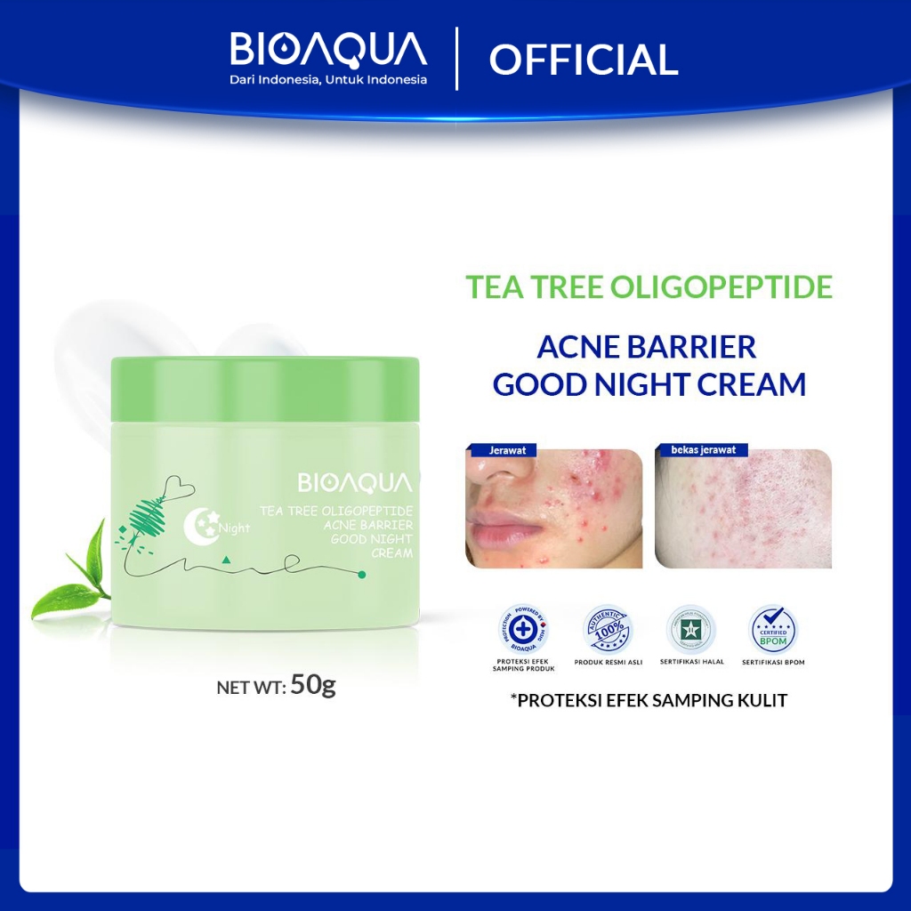 BIOAQUA Tea Tree Oligopeptide Acne Barrier Series Face Moisturizer Cream Night Cream / Cleanser / Toner / Sunscreen untuk Merawat dan Mencegah Pertumbuhan Jerawat jerawat dan bekas jerawat