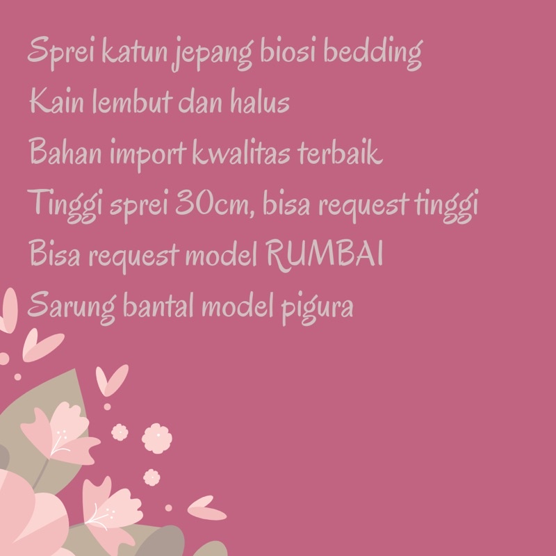 BIOSIBEDDING - SPREI KATUN JEPANG PUTIH POLOS BIRU NAVI PINK MOCCA CUSTOM SIZE KING QUEEN SINGLE - SPREI KATUN MURAH