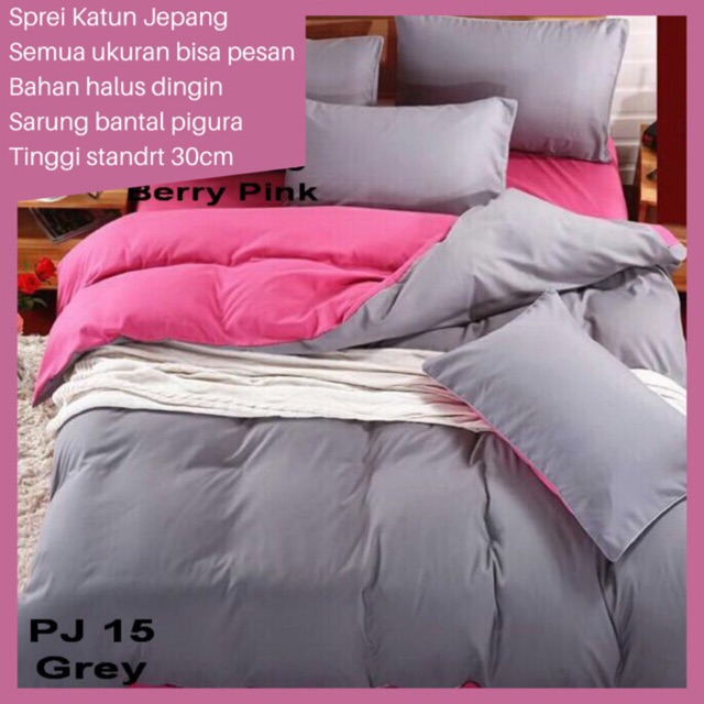 BIOSIBEDDING Spre Katun Jepang Polos Pink Biru Hitam Grey Custom Rempel Queen King Murah