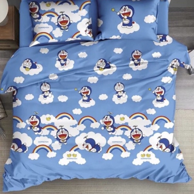 BIOSIBEDDING Sprei Katun Jepang Motif Anak Doraemon Biru Karakter Kartun Custom - Grosir Surabaya