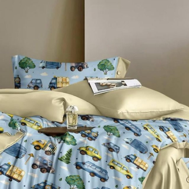 BIOSIBEDDING Sprei Katun Jepang Motif Anak Cars Garis Abstrak Custom Size King Queen - Grosir Sprei Katun Jepang