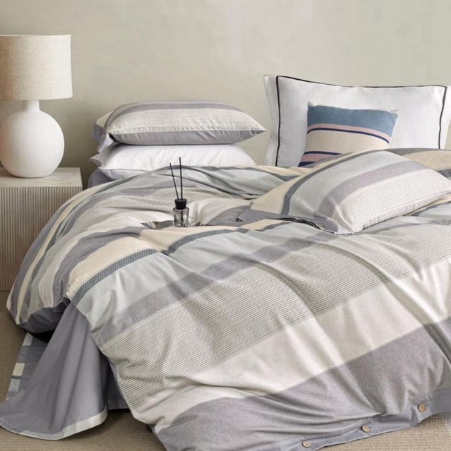 BIOSIBEDDING Sprei Katun Jepang Motif Garis Krem Minimalis Custom Semua Size - Sprei Murah Grosir