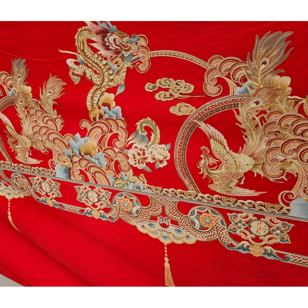 BIOSIBEDDING Sprei Katun Jepang Motif Xuangsi Imlek Chinese Wedding Naga Merah Custom Size Murah